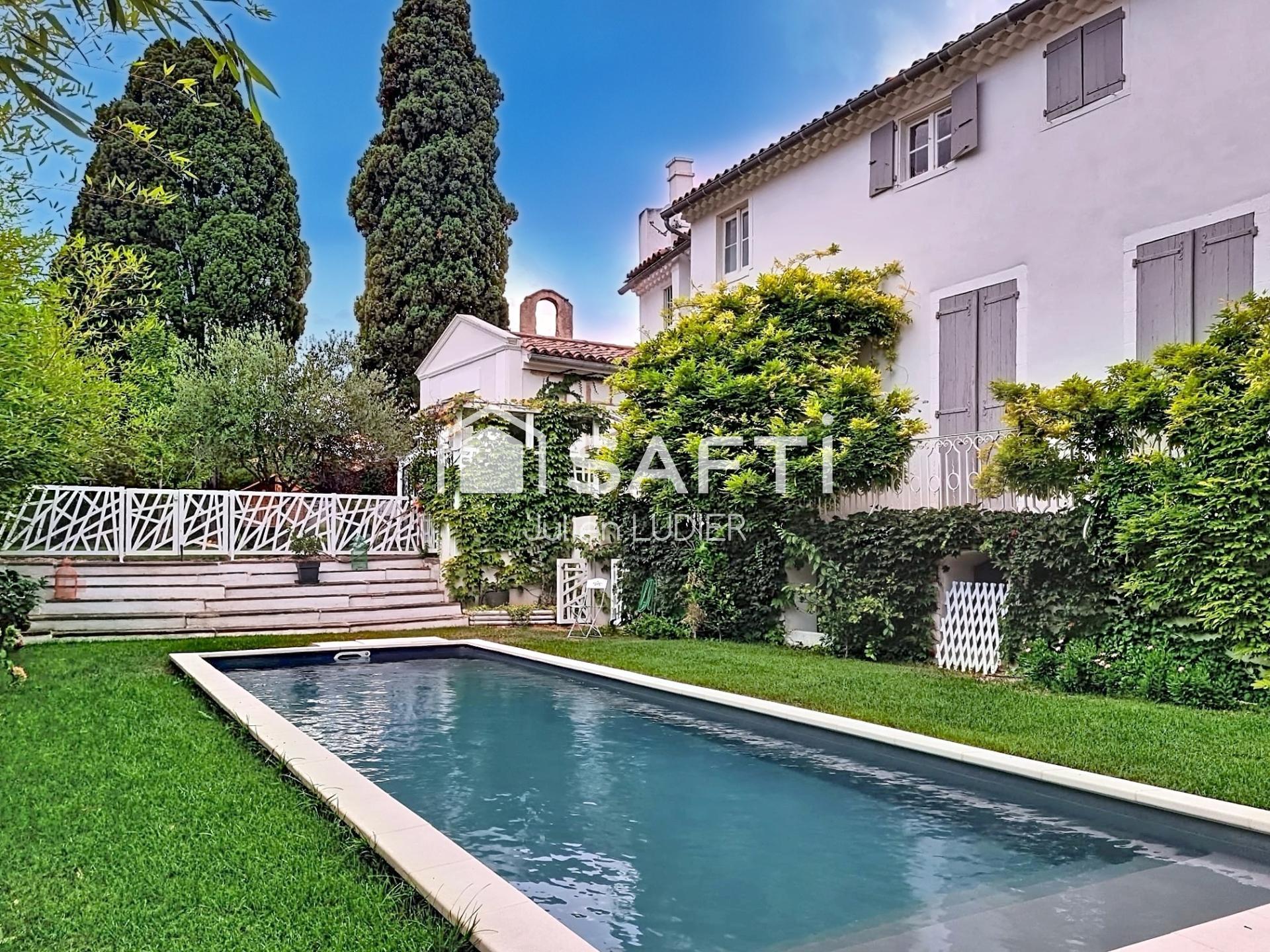 À l’extérieur, deux cyprès majestueux surplombent terrasses, jardin et piscine plein sud pour vivre cachés et heureux…