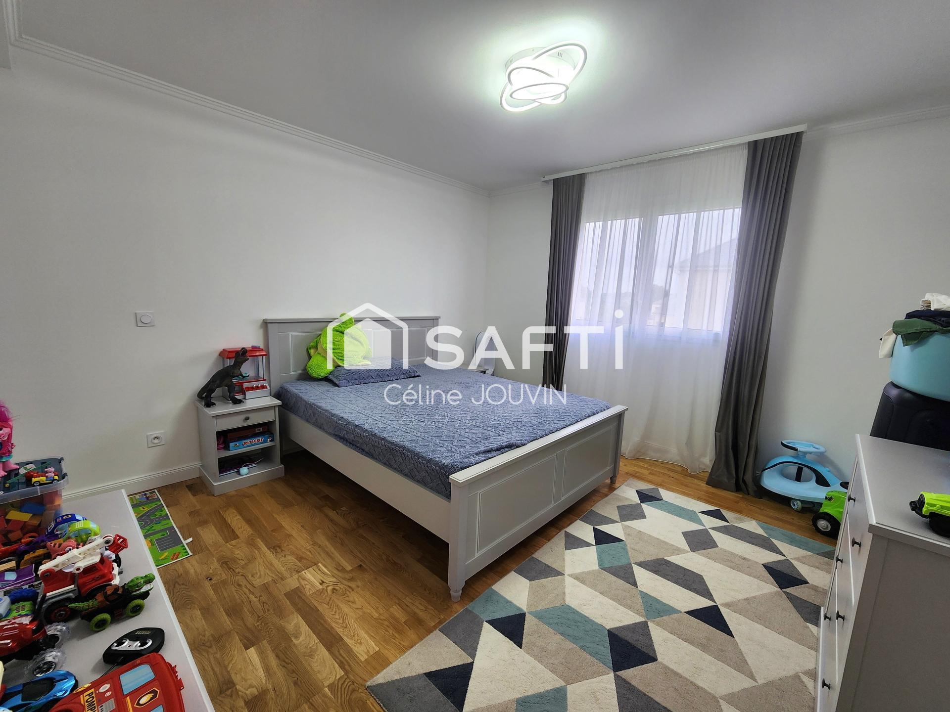 Dans un QUARTIER PAISIBLE et prisé, cette maison contemporaine de 2021 de 175m2 habitables avec sous-sol de 100m2 est édifiée sur un jardin clos de 1100m2. Jardin avec GRAND PARKING, terrasse et aire de jeu gazonnée.