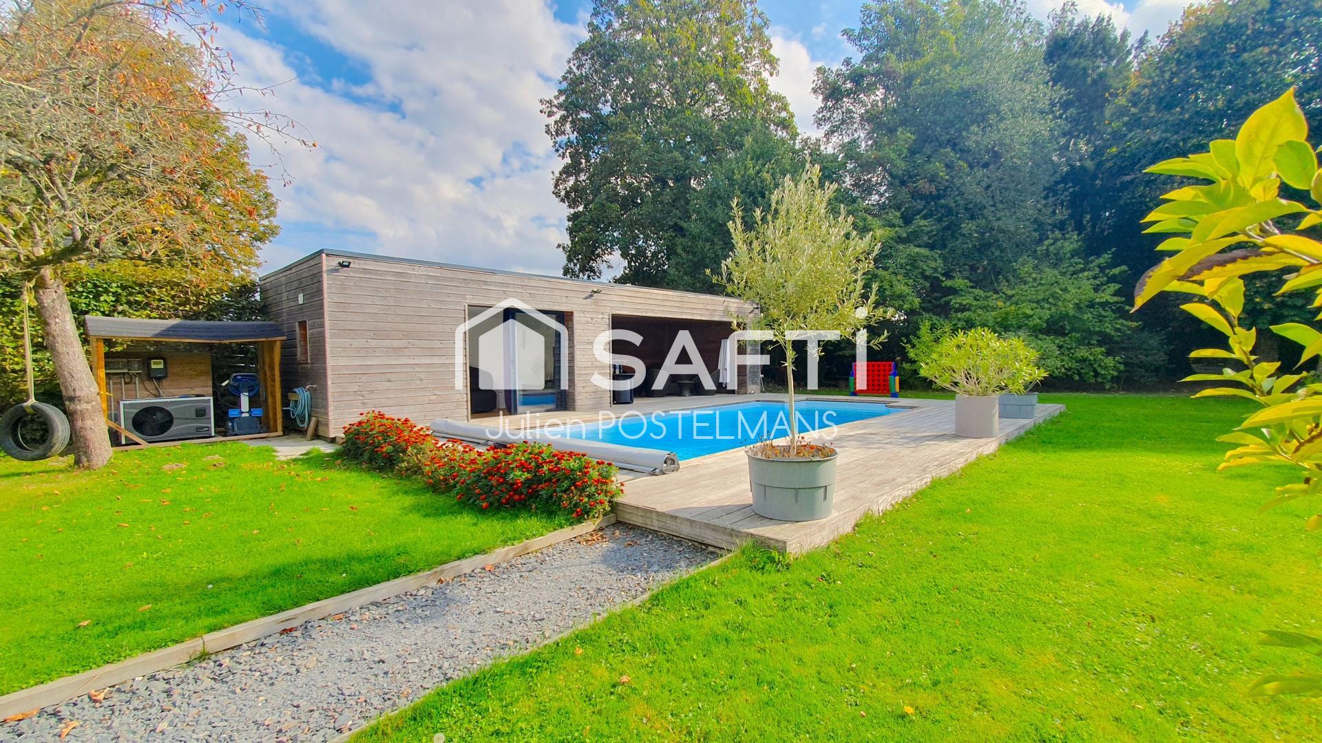 Orientée plein Sud, elle repose sur un jardin ARBORÉ, FLEURI et très bien entretenu d'env. 2500m² agrémenté d'une partie SOUS-BOIS, de deux CHALETS et d'une belle PISCINE CHAUFFÉE avec TERRASSE et son et POOL HOUSE comprenant un STUDIO INDÈPENDANT récent, idéal pour recevoir.