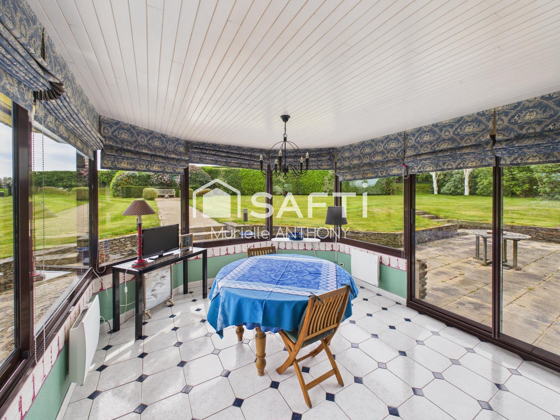 Maison d’architecte, perchée sur les hauteurs de Locquénolé. Avec ses 230 m² de surface de référence sur un terrain paysager clos de 3806 m², elle fera la joie d'une famille ou de ceux recherchant de l'espace près de la mer.