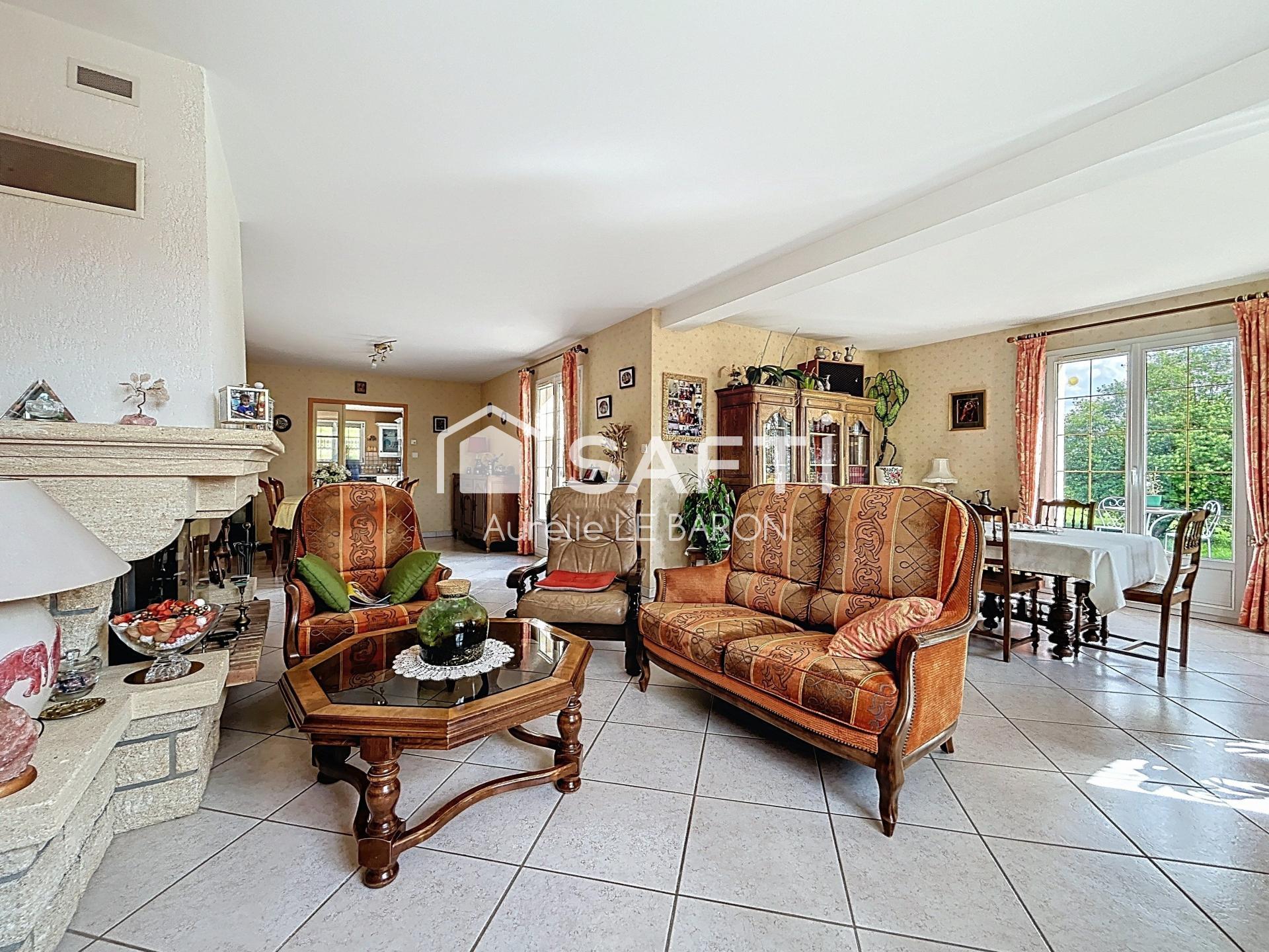 Dès l’entrée, vous serez séduit par une spacieuse pièce de vie baignée de lumière, sublimée par un poêle à pellets, créant une atmosphère chaleureuse et conviviale. La maison dispose également d’une grande cuisine entièrement équipée, pensée pour partager de beaux moments en famille ou entre amis.