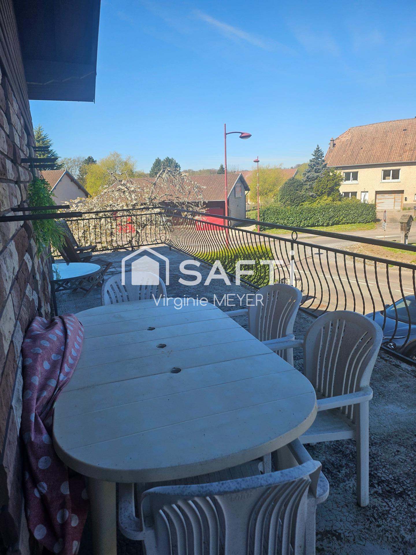 À l'extérieur, la maison propose une terrasse invitante pour profiter des journées ensoleillées, un balcon offrant une vue pittoresque, une place de parking extérieure et un garage pour stationner aisément jusqu'à quatre véhicules. Son impressionnante façade en brique et pierre ainsi que son mur en bois lui confèrent un cachet authentique et chaleureux, parfaitement intégré à son environnement.