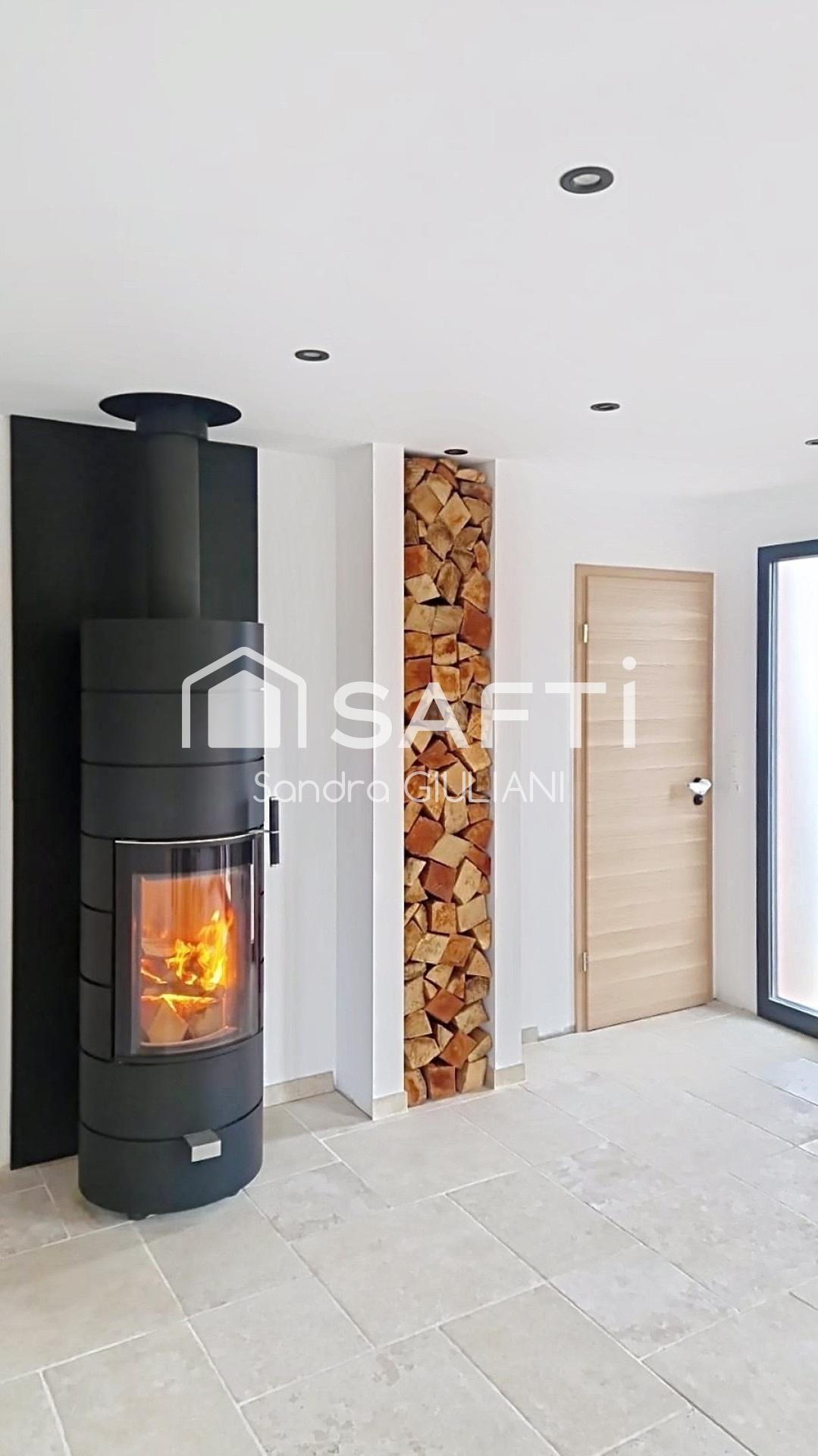 - RDC : espace salon-séjour lumineux et spacieux est ouvert sur une cuisine entièrement équipée et de qualité avec un accès direct sur une terrasse sur-élevée et accès au jardin aménagé et clôturé. Cette espace est équipée d'un poêle à bois de qualité qui chauffe toute la maison ( radiateurs à inertie dans toute la maison également ).