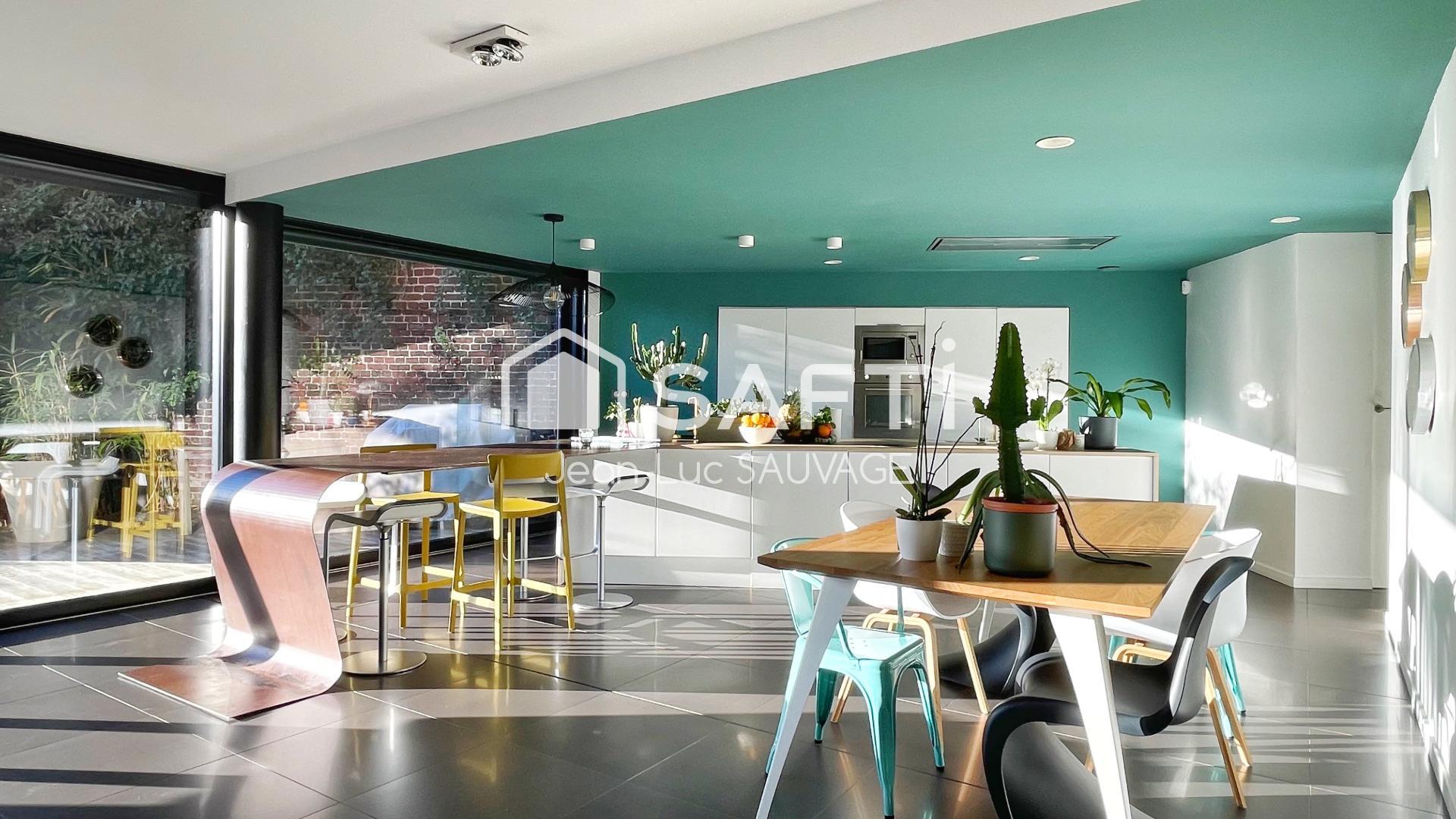 À Loos, dans un quartier résidentiel calme et recherché, à proximité immédiate des écoles et axes de transport, découvrez cette pépite, spectaculaire maison d’architecte cubique de 2013, au design épuré et aux lignes contemporaines. D’une surface de 210?m², elle offre un rez-de-chaussée aux volumes généreux agencé en open-space, baigné de lumière, où s’articulent harmonieusement une cuisine ouverte haut de gamme, un espace télétravail discret et un vaste séjour donnant sur une terrasse en bois et un jardin paysager. En empruntant un escalier magistral, rejoignez l’étage et découvrez 4 belles chambres dont une somptueuse suite parentale avec dressing et salle d’eau privative. Chauffage par le sol, finitions raffinées, façade moderne. Garage fermé pour 2 voitures et stationnement intérieur pour 3 véhicules complètent ce bien rare. Un lieu de vie d’exception, pensé pour conjuguer esthétique, fonctionnalité et bien-être au quotidien.