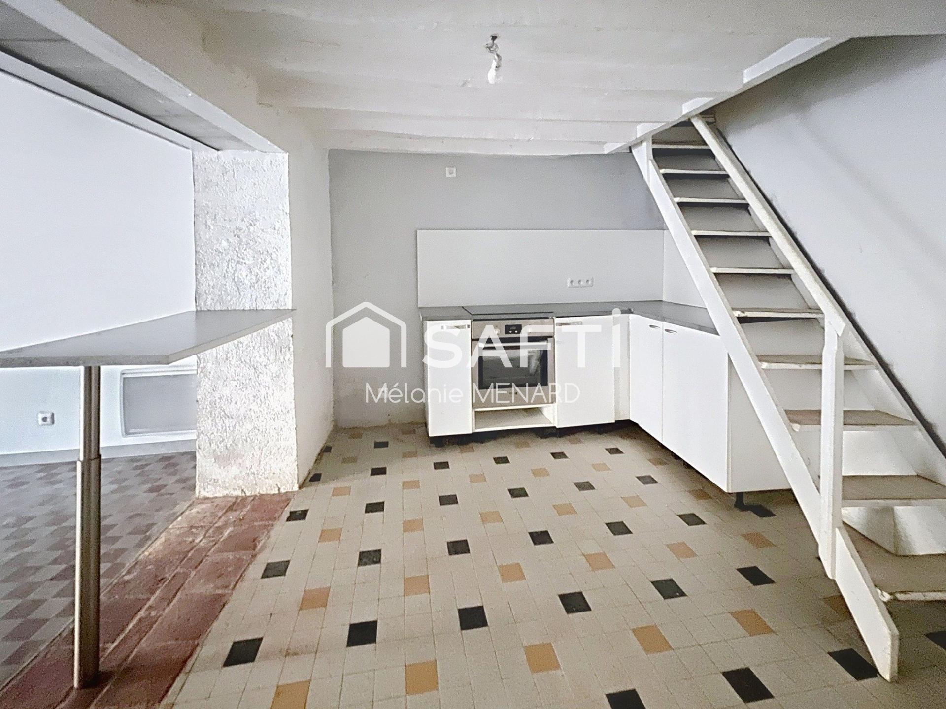 Cette maison à étage vous offre une pièce à vivre avec une cuisine ouverte.