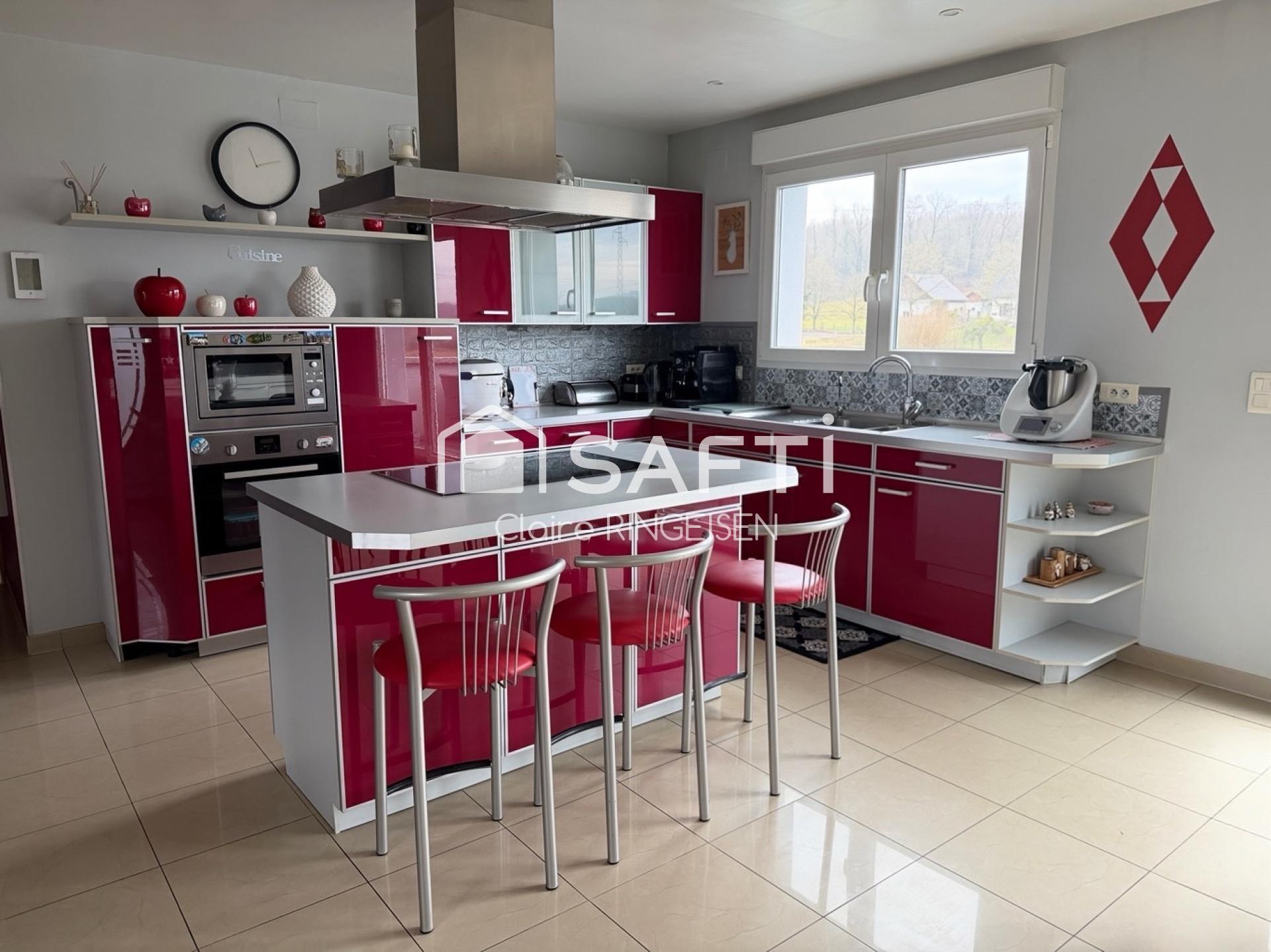 A découvrir sans tarder : une superbe maison de 110m² environ sur un terrain de 548m², située dans la charmante commune de Macheren. Cette belle propriété vous séduira dès l'entrée, qui mène à une cuisine moderne entièrement équipée, ouverte sur un vaste espace de vie lumineux comprenant salon, salle à manger et coin repas. L'ensemble s'ouvre directement sur une grande terrasse, idéale pour profiter des beaux jours. La partie nuit offre trois spacieuses chambres, ainsi qu'une grande salle de bain équipée d'une douche, d'une baignoire et de toilettes séparées. Le sous-sol complète parfaitement ce bien avec une chaufferie, plusieurs espaces de rangement pratiques, ainsi que deux garages motorisés. A l'extérieur, vous serez conquis par une vue imprenable qui confère à l'ensemble un charme unique. Un bien rare, à visiter sans hésiter, véritable coup de cœur garanti !