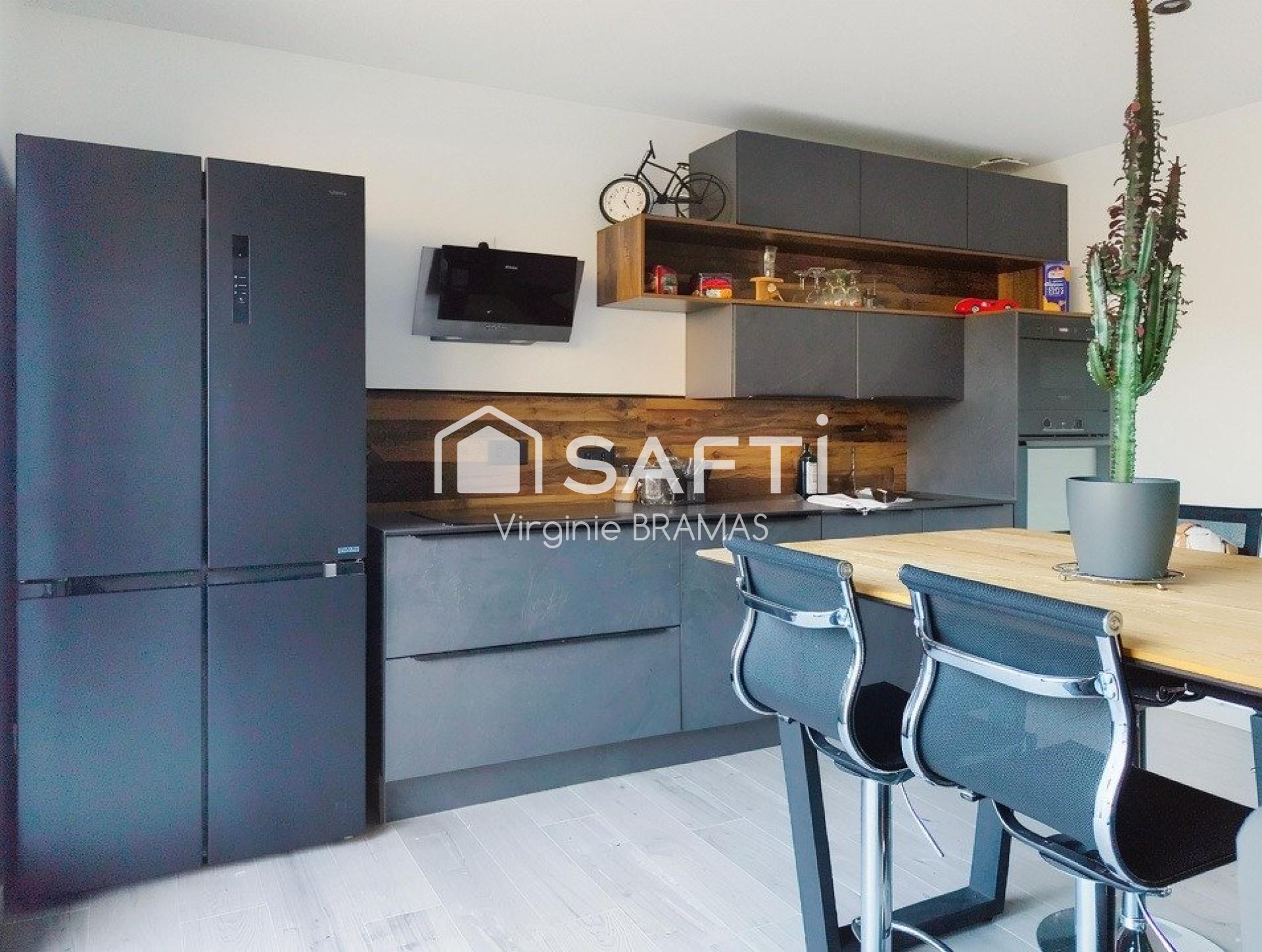 La cuisine neuve et entièrement équipée s’intègre naturellement à l’espace et offre un confort immédiat.