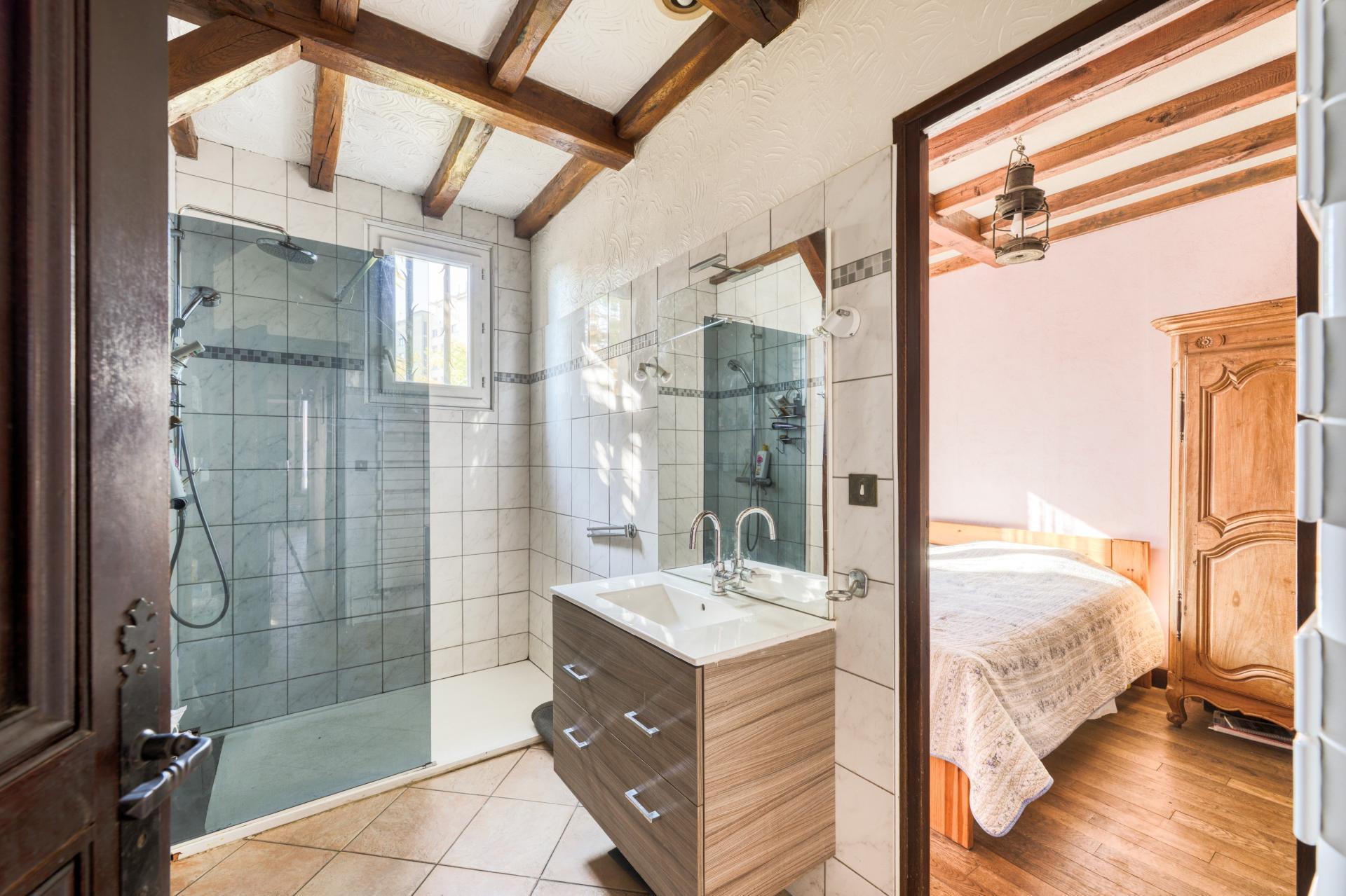 Au premier étage se trouve un double séjour de 32m2 avec accès à une terrasse exposée plein sud, une grande cuisine dinatoire aménagée et équipée, une chambre parentale et un WC indépendant.