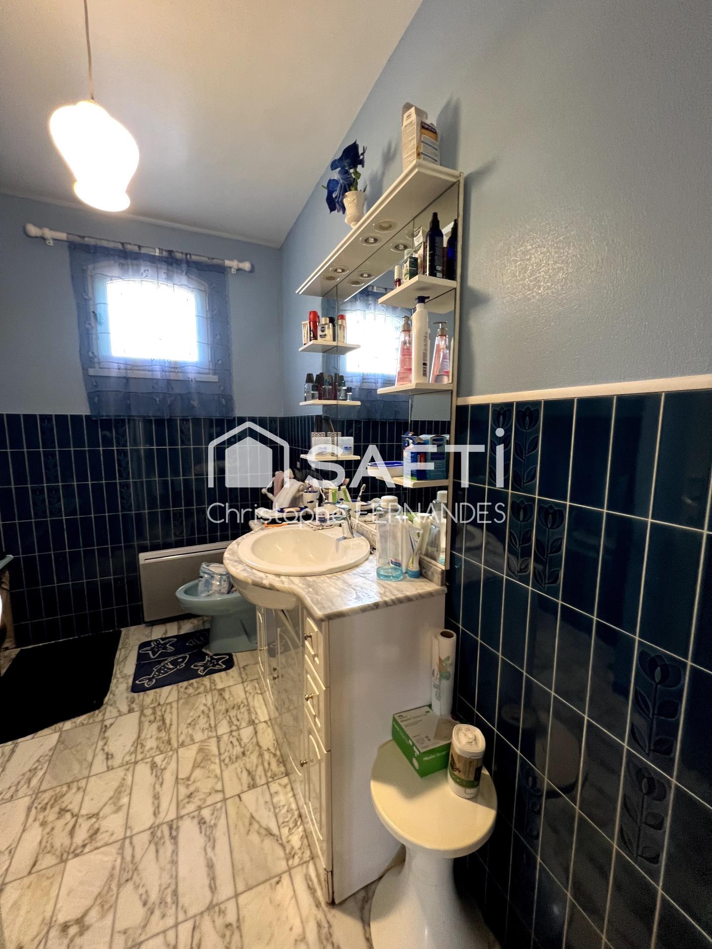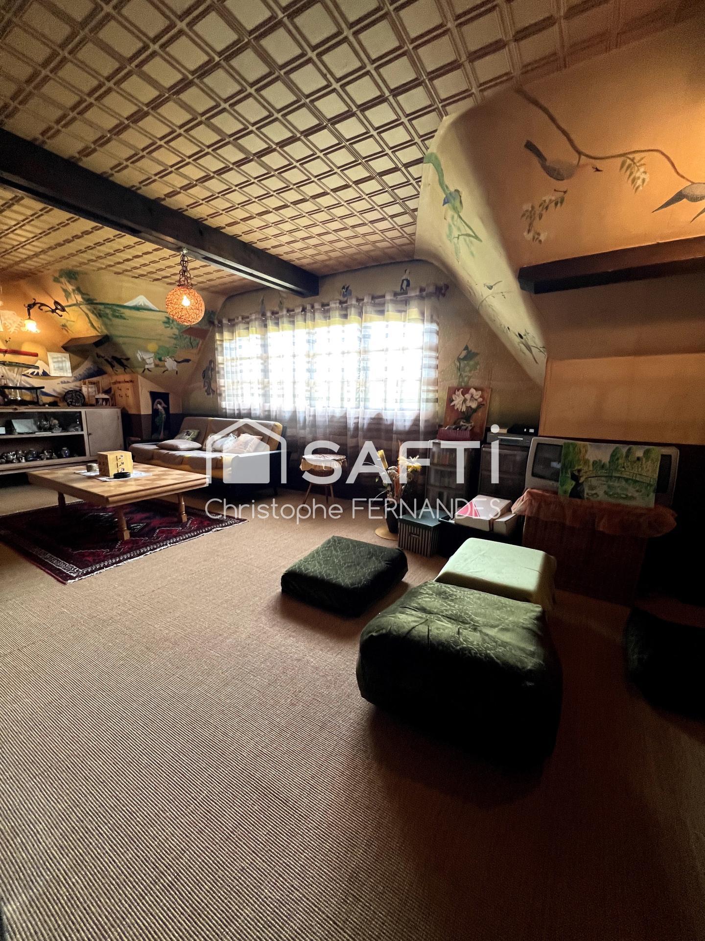 Charmante maison de 160 m² une véritable perle dans un cadre paisible. La localité offre un environnement calme et familial, propice à la détente. Proche des commerces et des écoles, elle bénéficie d'une excellente accessibilité aux transports en commun, offrant ainsi une certaine facilité au quotidien.