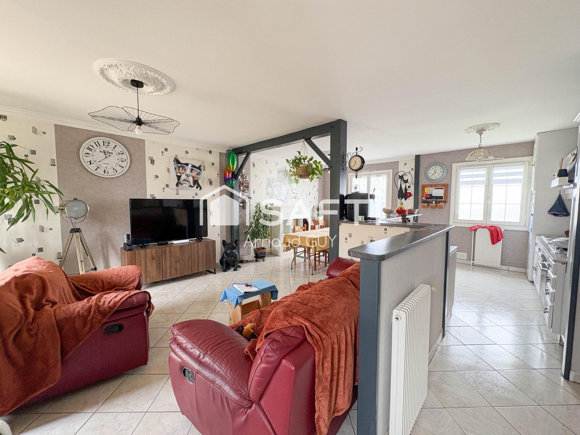 À l'intérieur, la maison de 73 m² se compose d'un espace de vie lumineux, comprenant un salon/séjour ouvert sur une cuisine équipée, une salle d'eau, deux chambres avec placards et un WC indépendant. Construite en 1979, cette propriété offre un agencement fonctionnel et confortable pour une vie de famille harmonieuse.