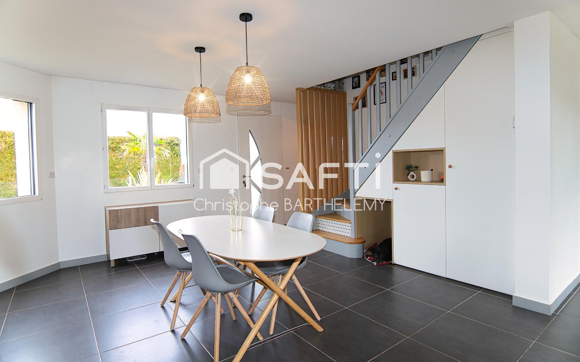 Construit en 2000 et entièrement rénové, ce pavillon de 112 m² sur un terrain de 1050 m² sans vis-à-vis propose un agencement moderne et fonctionnel. Il se compose d'un spacieux séjour lumineux avec baie vitrée, ouvert sur une cuisine moderne et récente, d'un bureau, d'une lingerie, ainsi que trois belles chambres dont une suite parentale avec salle de douche avec meuble vasque et d'un dressing. Une salles de bain et un toilette supplémentaires viennent compléter cet ensemble pour accueillir votre famille.