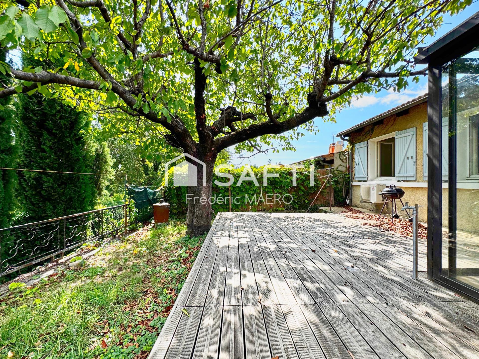 Elle dispose d’un jardin bien agencé offrant plusieurs espaces distincts. À l’entrée, une belle surface vous permettra d’aménager selon vos envies, notamment l’installation d’une piscine. À l’arrière, un second espace accueille une agréable terrasse avec vue dégagée sur les collines.