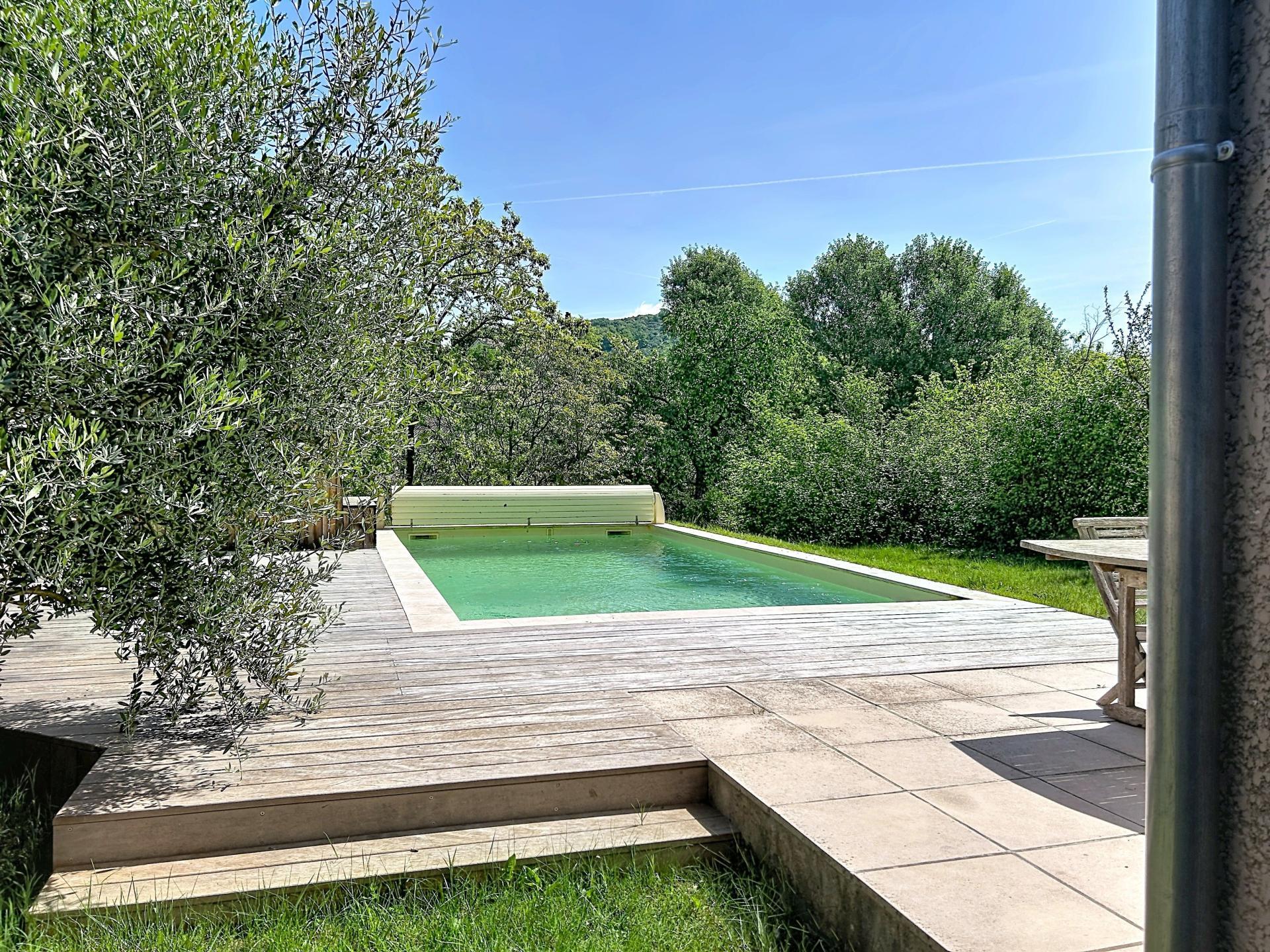 Piscine et beau terrain arboré
