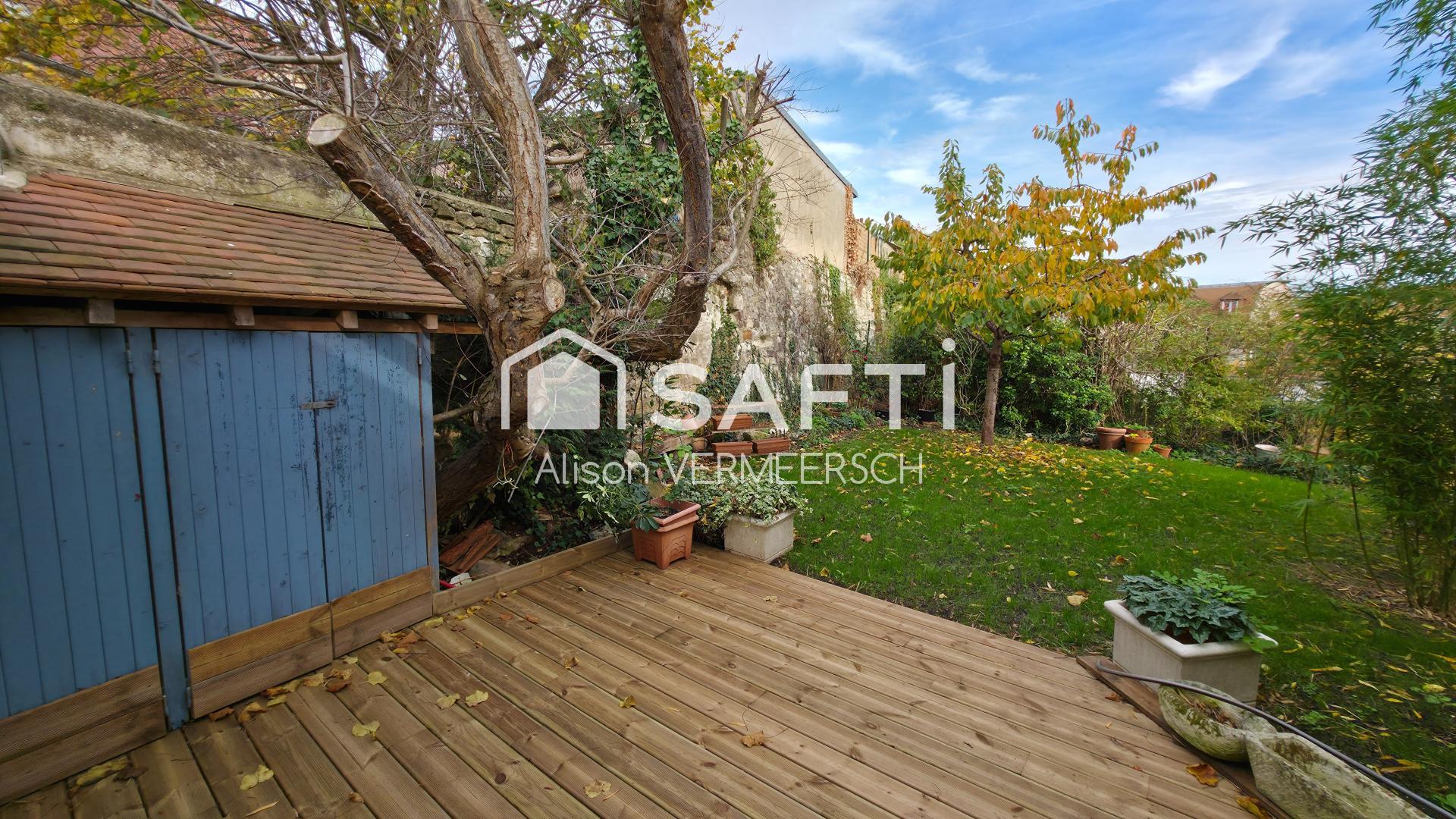 Un jardin clos et arboré avec sa terrasse en bois complètent ce bien, ainsi qu'un abris de jardin.