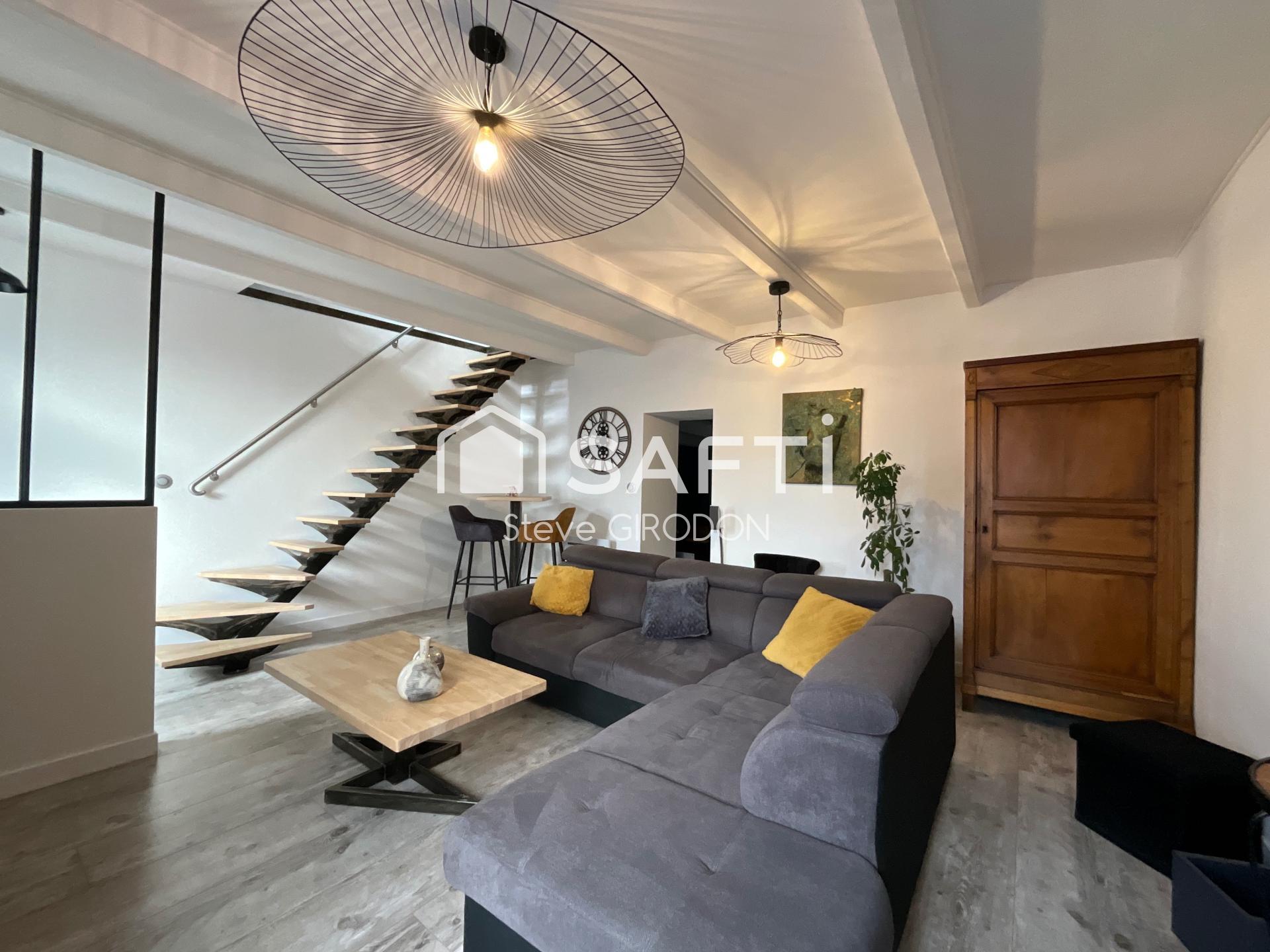 Cette maison de charme de 1850, entièrement rénovée en 2021, offre 86 m² mêlant cachet et modernité. Vous apprécierez dès l’entrée la qualité des finitions et le travail sur mesure réalisé : escalier en acier conçu artisanalement avec son garde-corps assorti. Preuve du sérieux de la rénovation : installation électrique documentée et répertoriée, éclairage LED pensé pièce par pièce et radiateurs haut de gamme assurant un confort constant.
