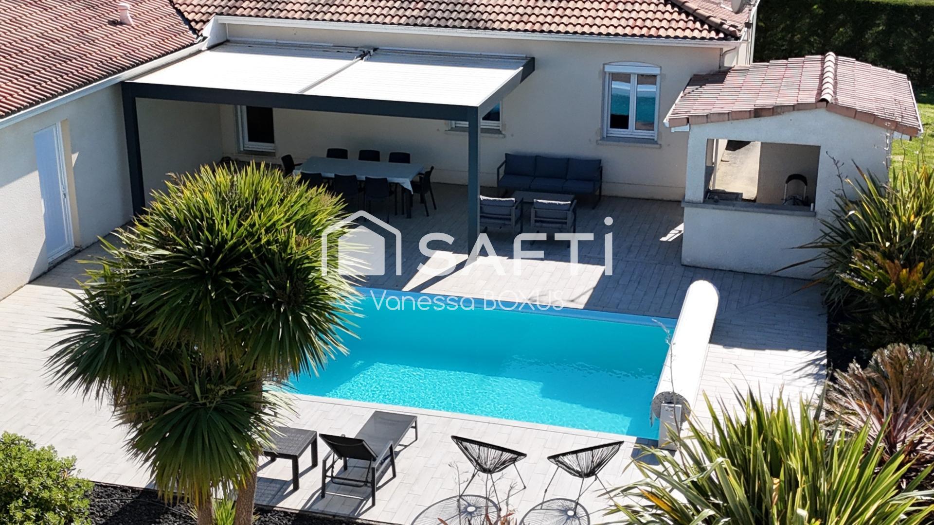 ? Une magnifique piscine, accompagnée d’une immense terrasse et d’une pergola bioclimatique pour des moments de détente en famille ou entre amis.