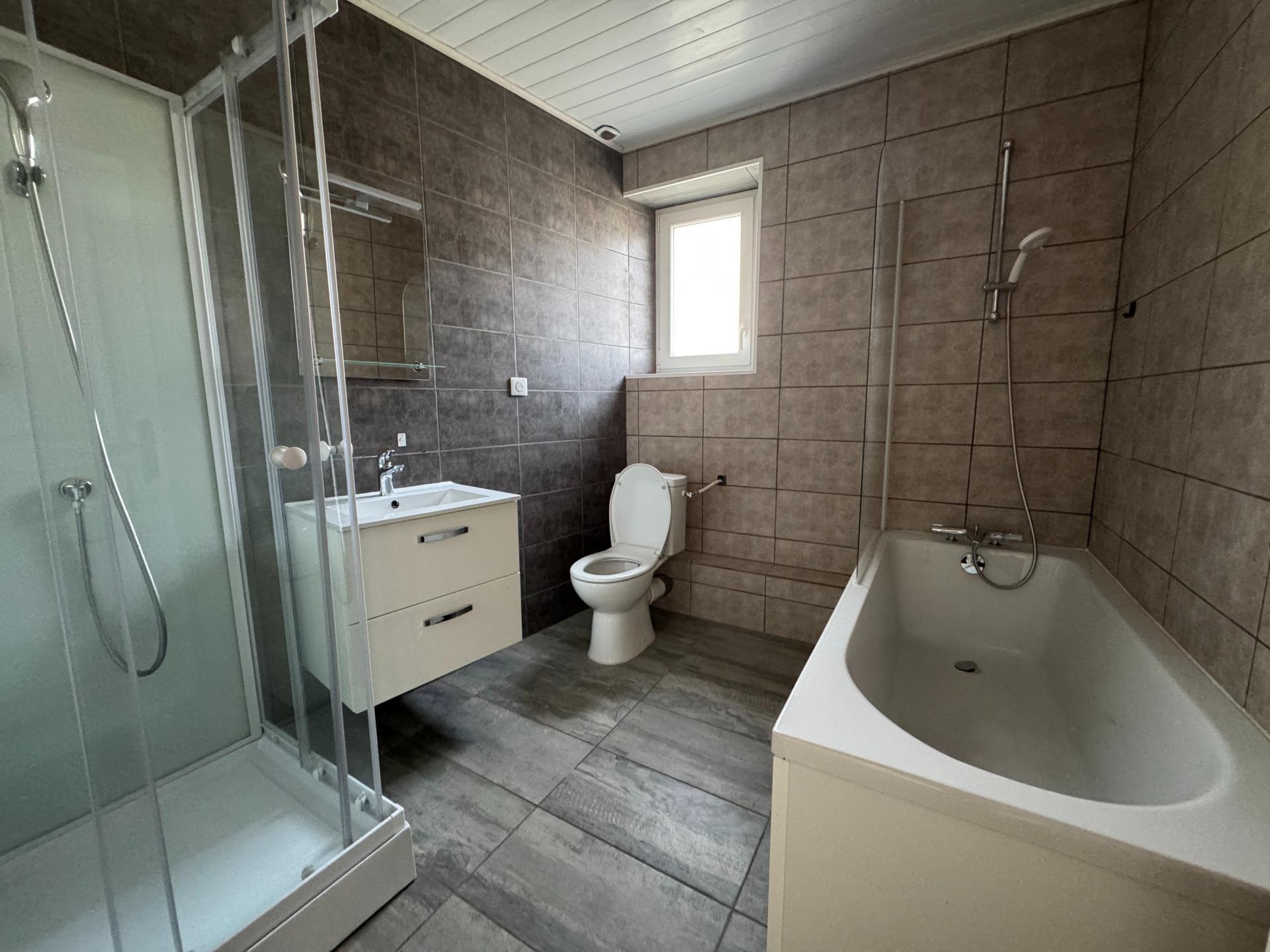 Le premier niveau, quant à lui, dispose de deux chambres, d'une salle de bains avec douche et baignoire, d' un toilette.