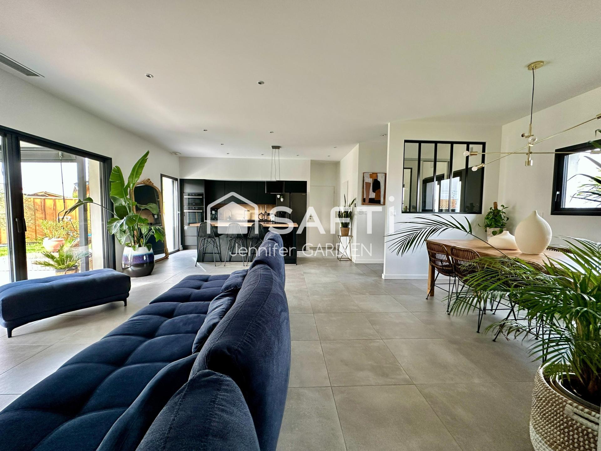 Dans un quartier pavillonnaire récent et paisible, venez découvrir cette charmante maison contemporaine de plain-pied, construite en 2022, baignée de lumière grâce à son exposition Sud-Ouest et à sa belle hauteur sous plafond.