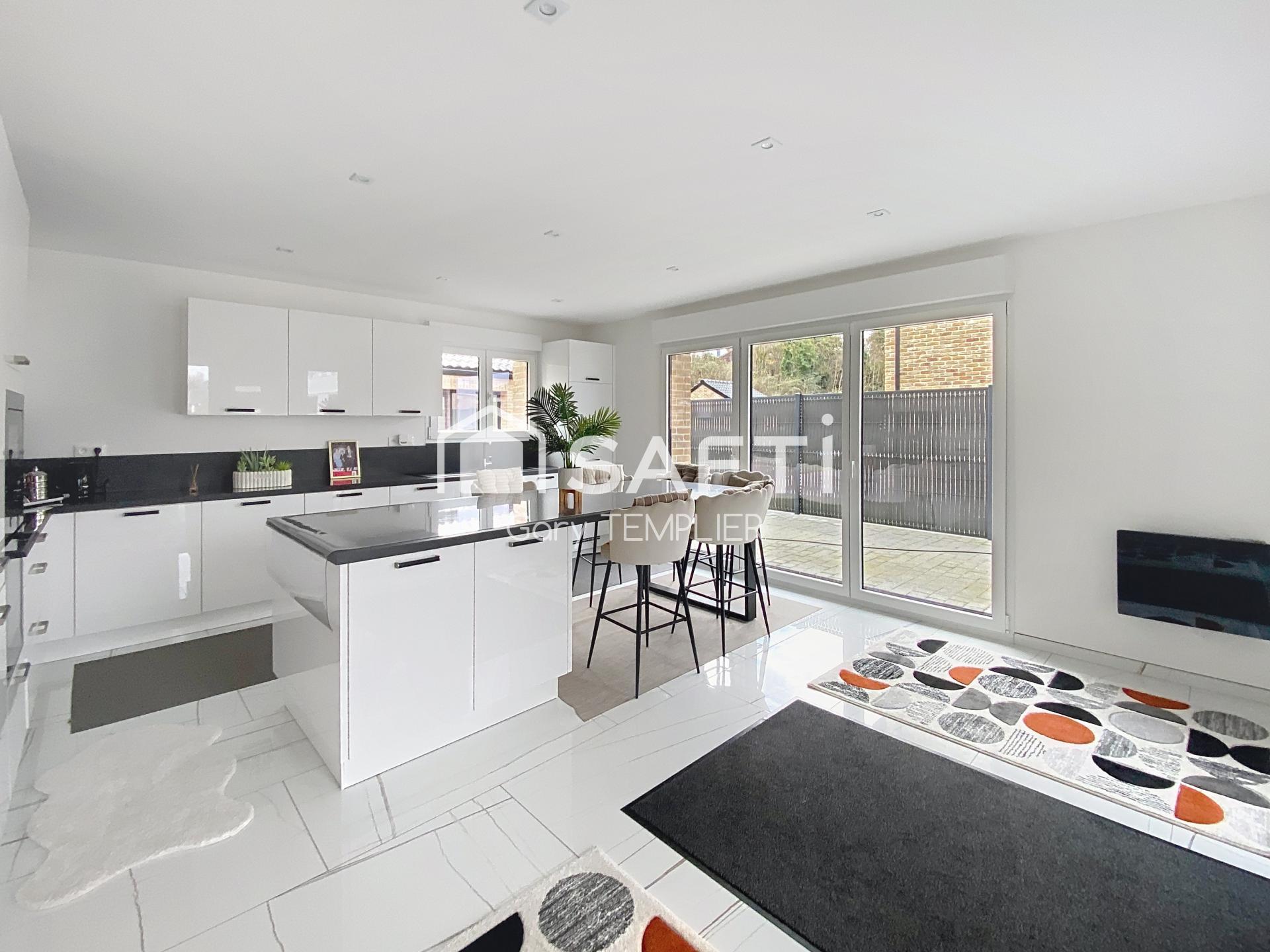 Située dans un quartier pavillonnaire prisé de Marly (59770), cette belle maison individuelle de 170 m², construite en 2021, offre un cadre de vie paisible et parfaitement adapté à une vie de famille.