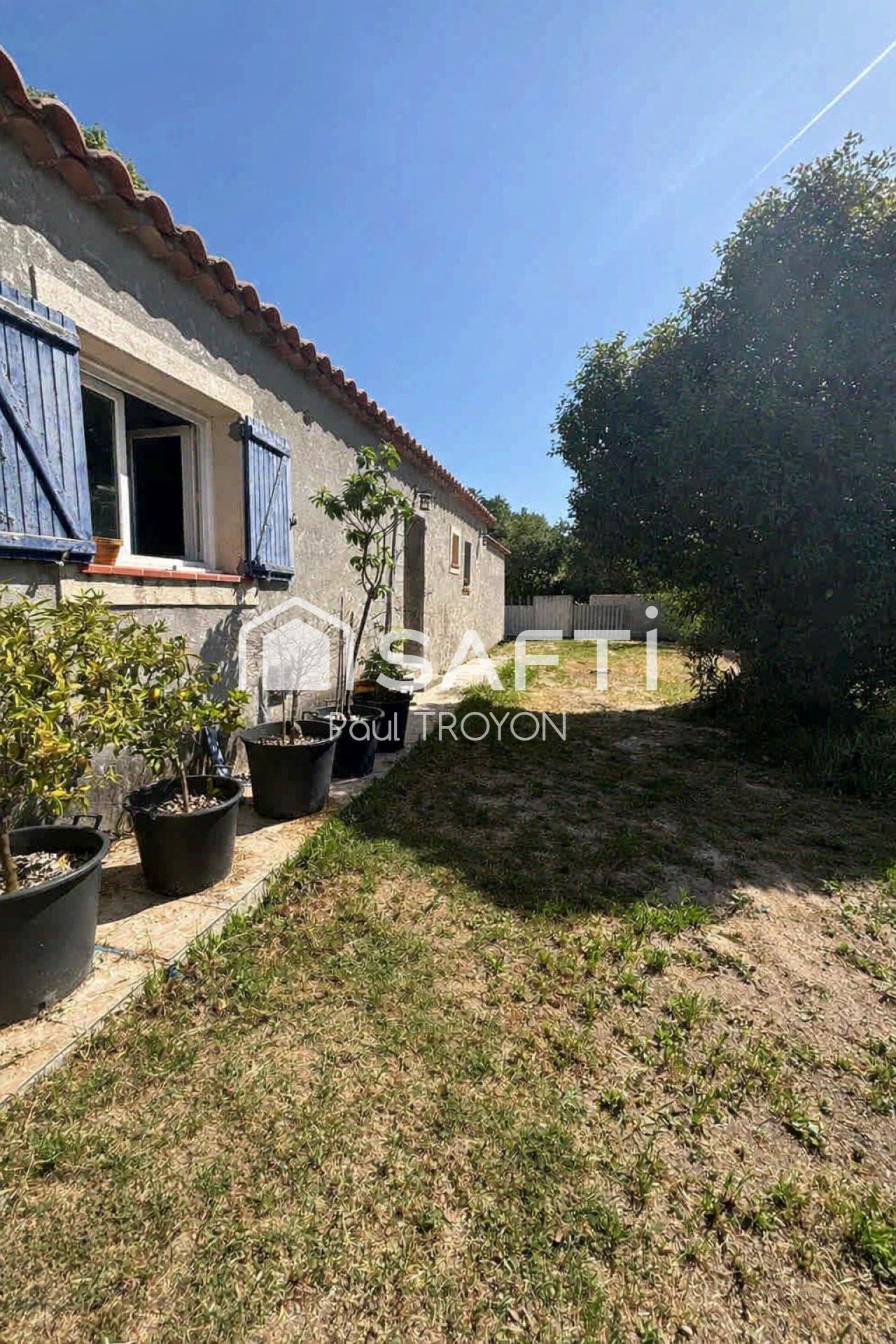 Cette charmante maison de plain?pied offre un intérieur moderne et soigné, avec de belles prestations : cuisine équipée contemporaine, salle d’eau combinant baignoire et douche, vaste séjour lumineux avec cuisine ouverte, ainsi que deux chambres, chacune dotée de son propre dressing. L’ambiance est chaleureuse, fonctionnelle et prête à accueillir votre style.