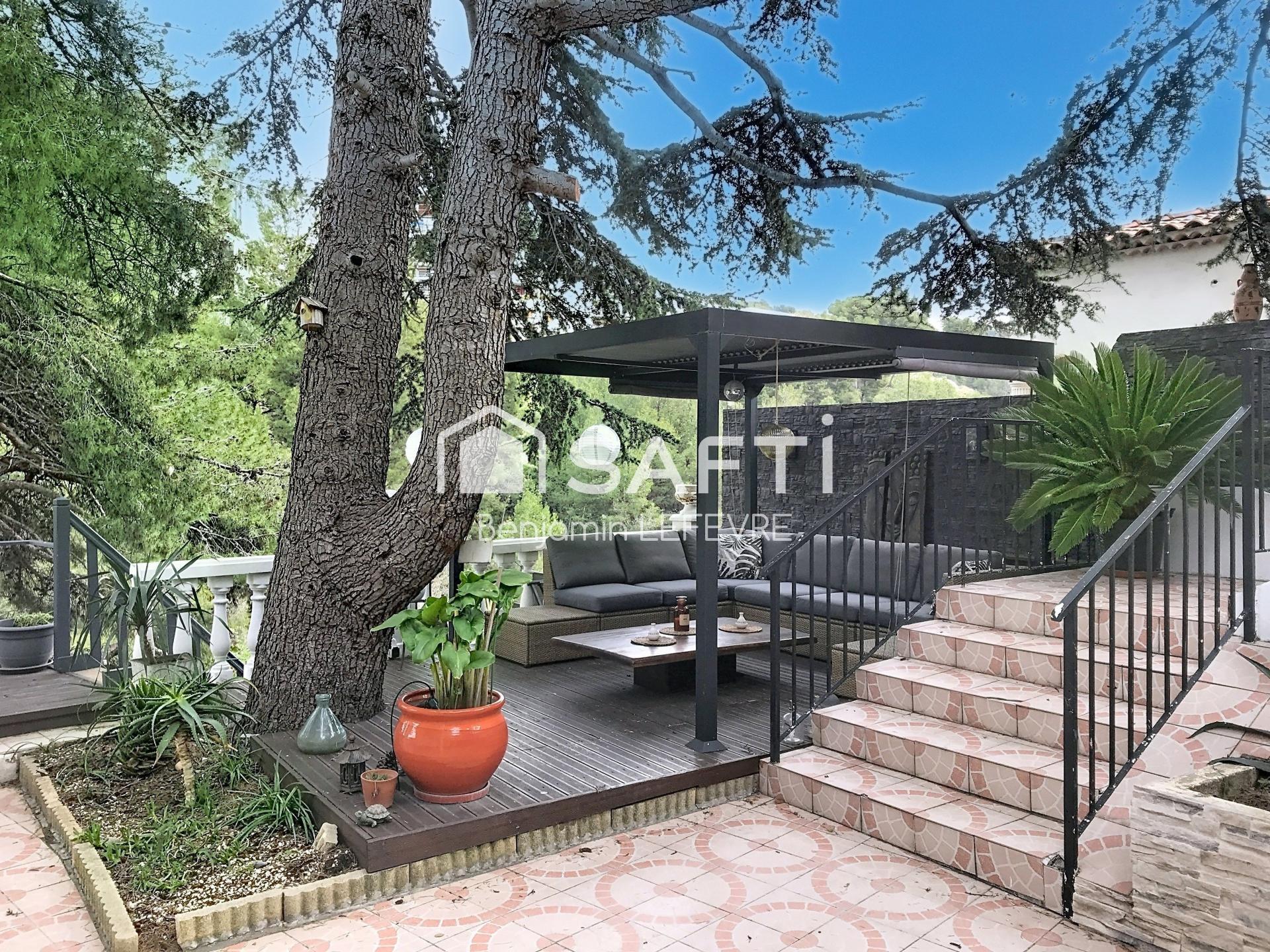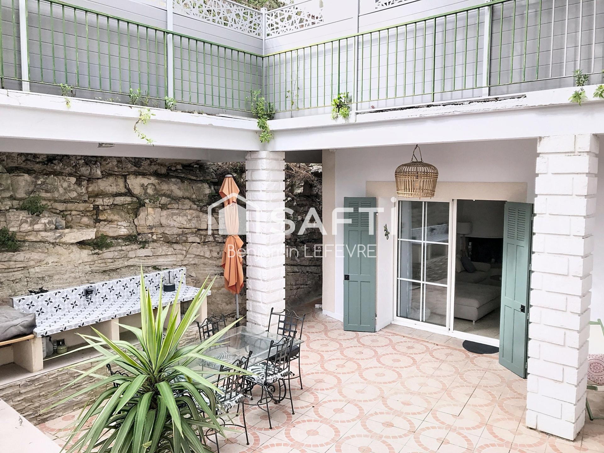 Quartier des Borels, Je vous propose de visiter une pépite comme on en trouve rarement dans le 15e arrondissement. Empruntons l'escalier pour descendre sur la terrasse principale de ce bien en bas de maison semblable à un appartement en rez-de-jardin sans vis-à-vis composé d'une entrée sur séjour avec cheminée et grande ouverture sur terrasse, d’une cuisine dînatoire avec côté technique et côté table, de 2 chambres, une salle de bain avec douche et baignoire & WC séparés. Une buanderie permet le stockage de tout ce que l'on ne souhaite pas voir dans la maison et donne accès à un studio indépendant de 20 m² avec sa salle d’eau permettant l’indépendance d’un ado. (Possibilité de location courte durée, exercice 2025 : 4.000€ ) L'extérieur se compose de deux spacieuses terrasses offrant une vue sur le canal de Marseille et créant ainsi une ambiance bucolique avec accès terrain supplémentaire en restanque. Aucun travaux à prévoir. Le stationnement est simple grâce à la présence d'un garage de 18 m² et d'une place privative. Le transfert en syndic bénévole est possible rapidement afin de plus avoir de charges de co-proprieté. attention : coup de coeur !
