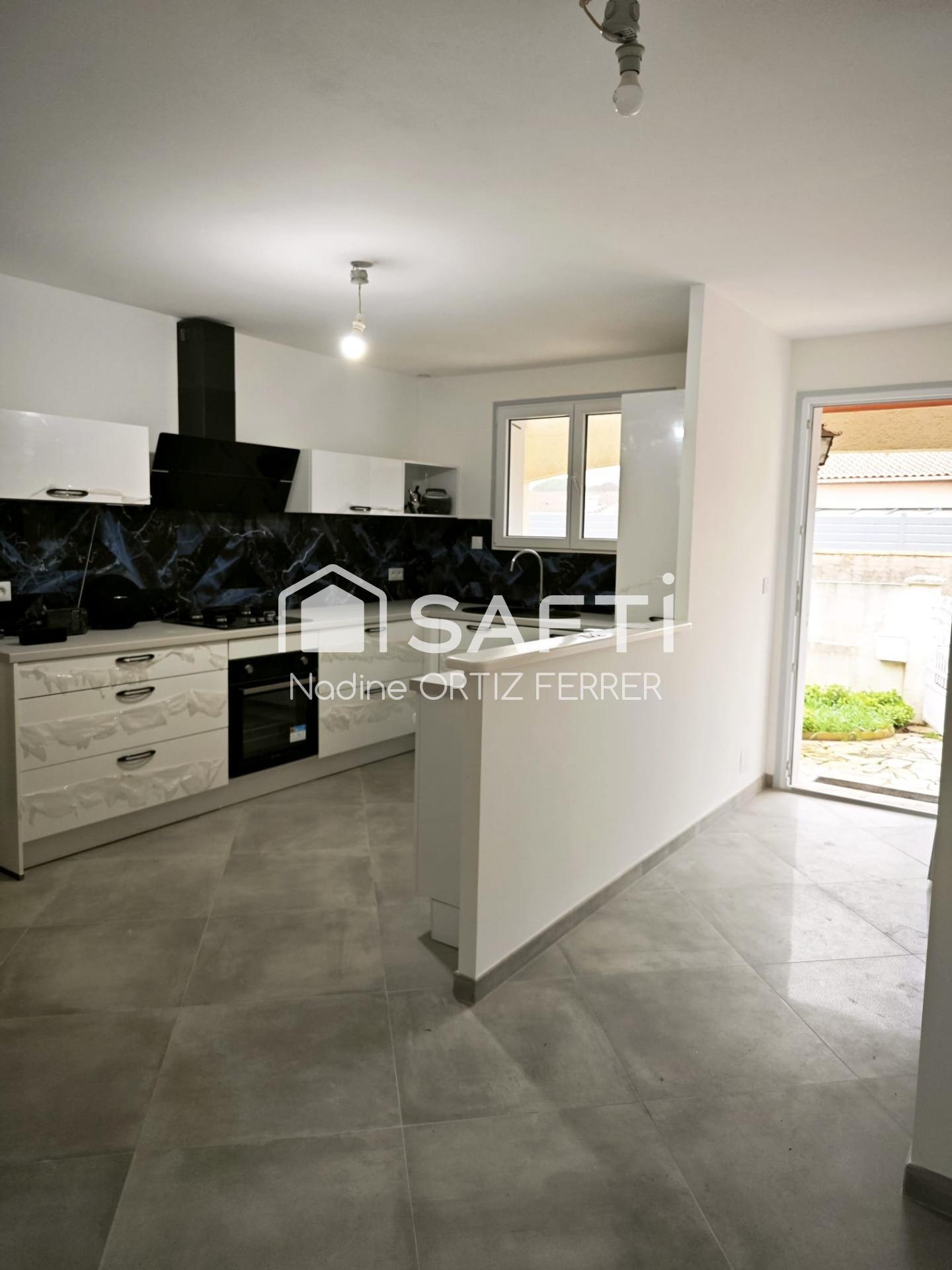 Cette Villa de plain-pied de 88m2 sur un terrain de 400m2 est entièrement rénovée avec des matériaux de qualité.