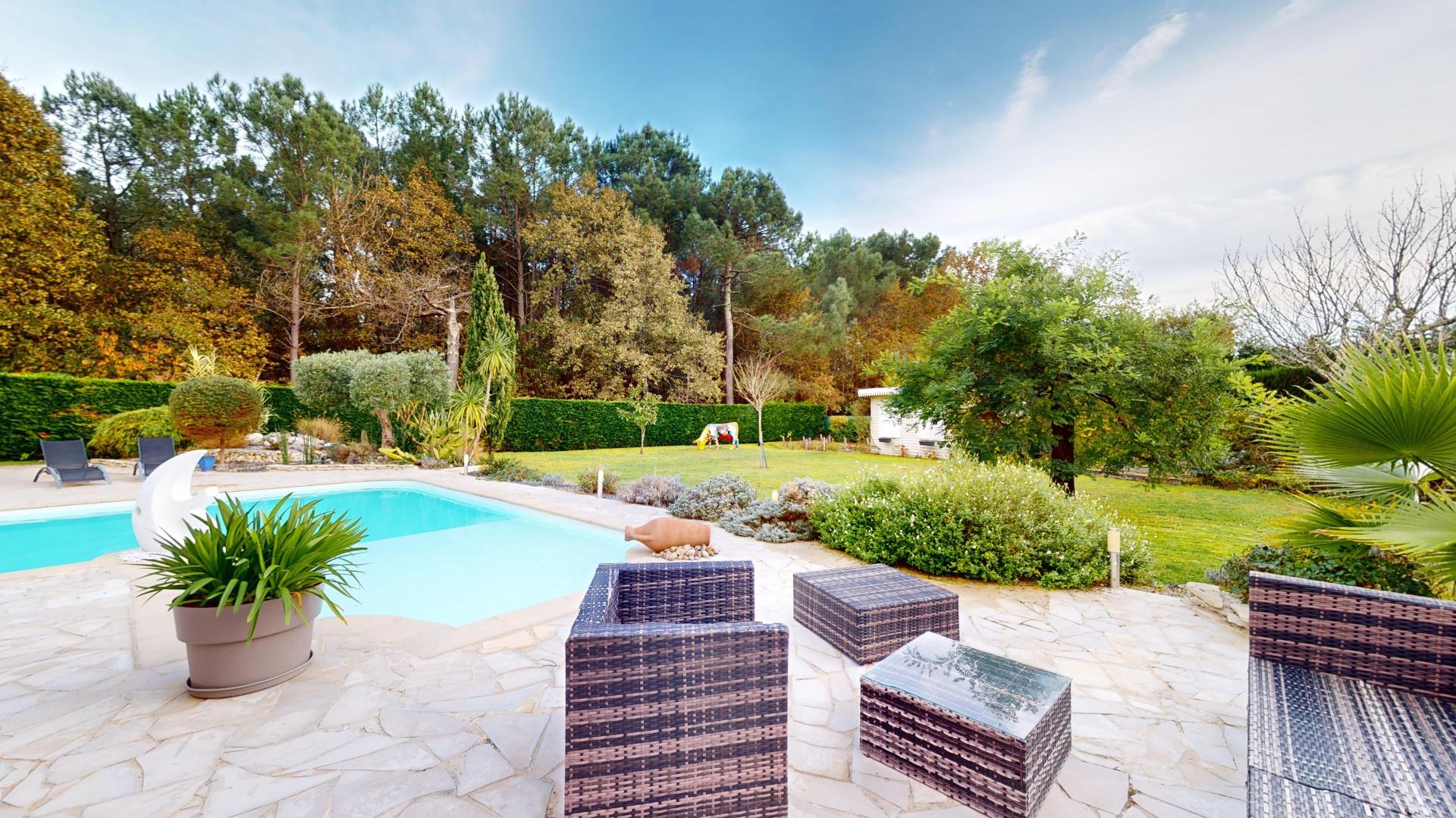 Exposée plein sud et offrant une vue dégagée, cette maison lumineuse en bordure de forêt est une véritable invitation à profiter d’un cadre de vie unique et paisible à deux minutes du centre-ville de Martignas.
