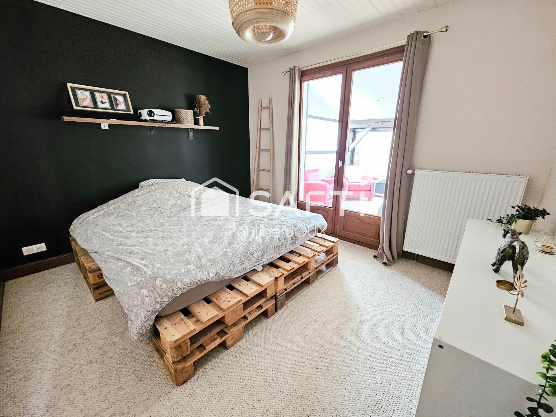 À l'étage, on découvre une cuisine équipée, un salon/salle à manger lumineux avec un poêle à bois, une véranda agréable, 2 chambres confortables, une salle de bain avec une baignoire et une douche italienne, un wc suspendu. Sans oublier le terrain clos et arboré, une terrasse et un cabanon, parfaits pour profiter des beaux jours.