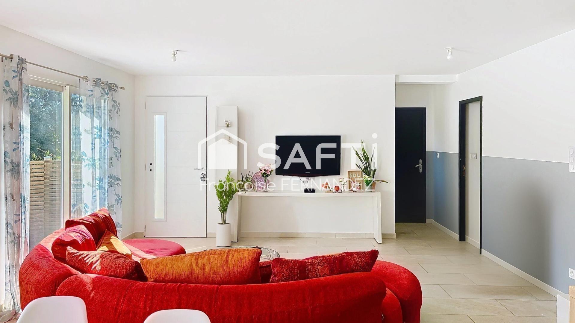 Sur un terrain de 1168 m², cette villa récente de 110 m² offre un emplacement exceptionnel avec une piscine californienne 10 x 5 et un gîte indépendant de 20 m². L'espace extérieur, clos et arboré, est aménagé d'un boulodrome et d'un jacuzzi, offrant ainsi intimité et convivialité pour profiter des journées ensoleillées dans un cadre verdoyant.