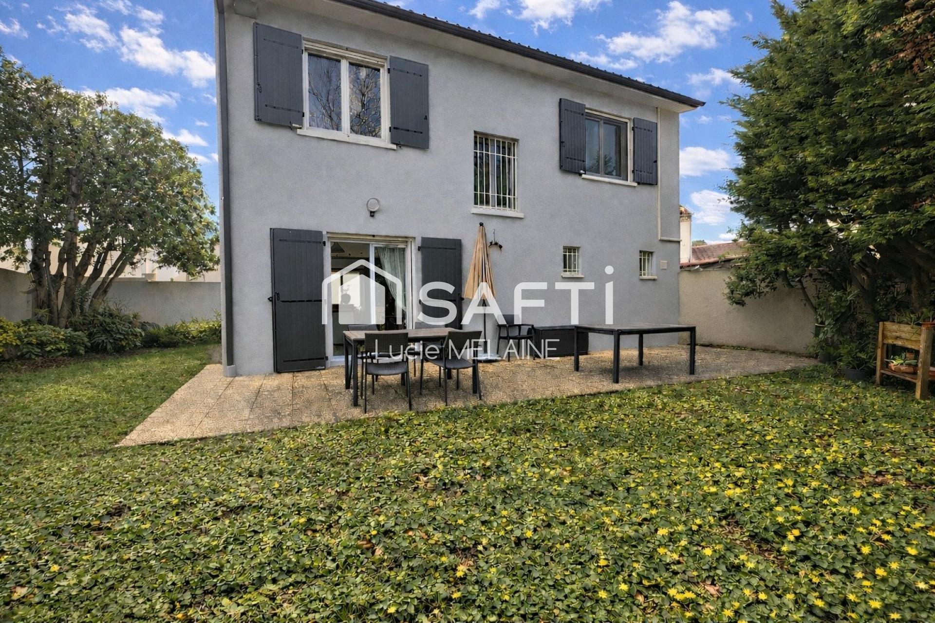 Cette charmante maison de 120 m² sur un terrain de 251 m² au calme, sans vis à vis et non mitoyenne, à pied du tramA et des écoles primaires et maternelles.