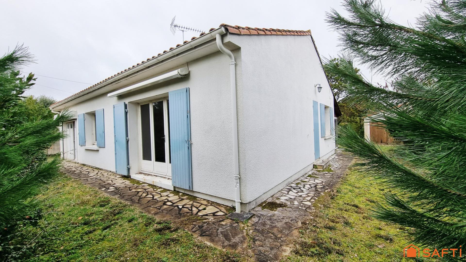 À Meschers-sur-Gironde, dans une rue paisible, à seulement 1 km du centre et moins de 2 km des plages, cette maison de plain-pied offre un fort potentiel de rénovation, le tout sur un beau terrain arboré d’environ 1 000 m², entièrement situé en zone constructible. La maison propose actuellement une entrée, une cuisine indépendante, un séjour lumineux ouvert sur le jardin, deux chambres, une salle d’eau, des WC séparés, une véranda ainsi qu’un garage attenant. Un second garage indépendant complète l’ensemble, idéal pour un atelier, du stockage ou un futur aménagement. L’environnement et la configuration du terrain permettent d’envisager de nombreux projets : extension, réorganisation des volumes, création d’un espace extérieur convivial ou d’une piscine. Un bien rare sur le secteur, destiné aux acquéreurs souhaitant personnaliser leur future maison dans un cadre calme et recherché, prête à écrire une nouvelle histoire. Logement à consommation énergétique classe G.