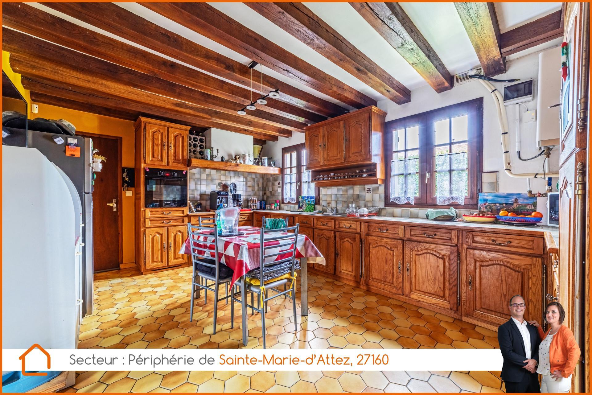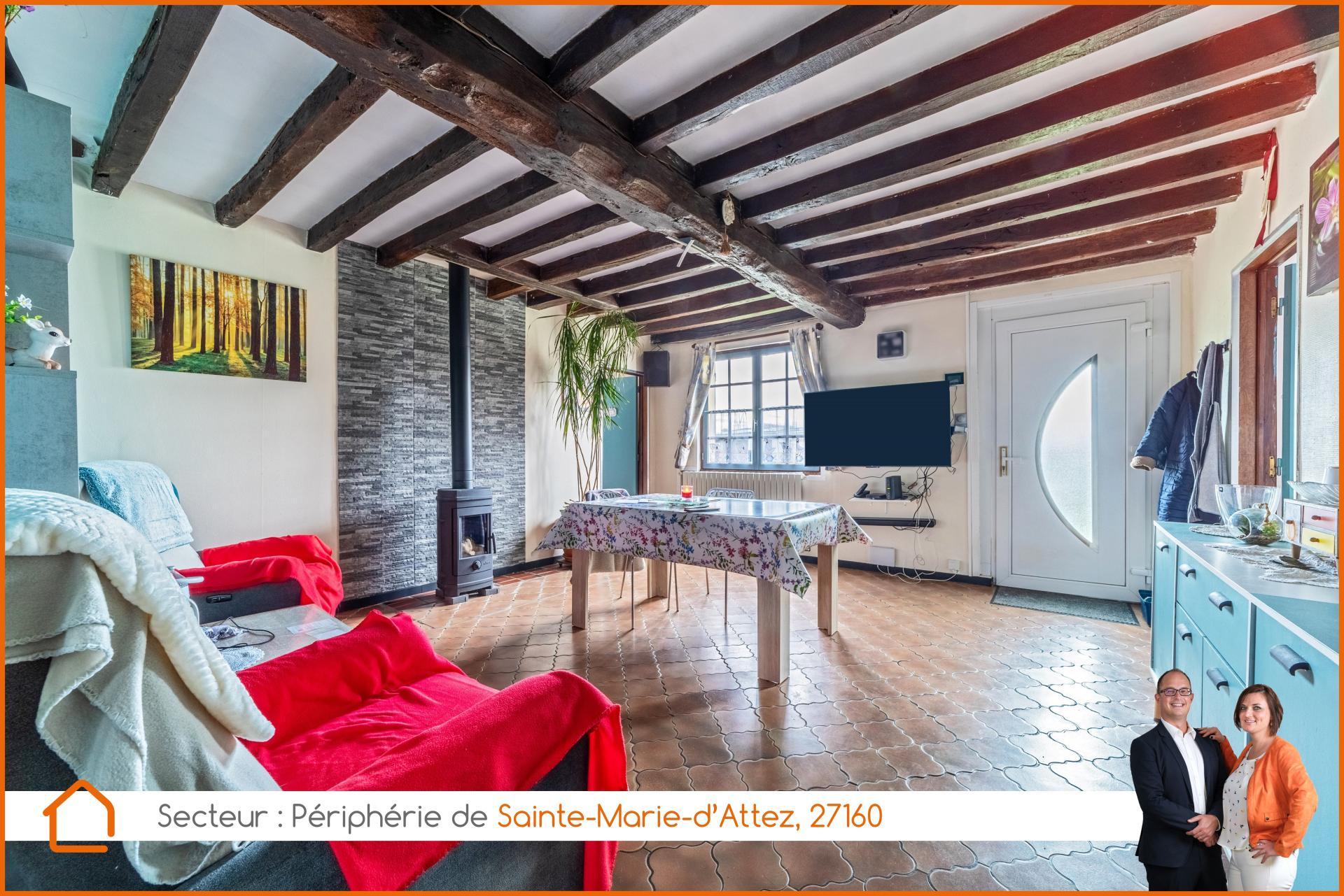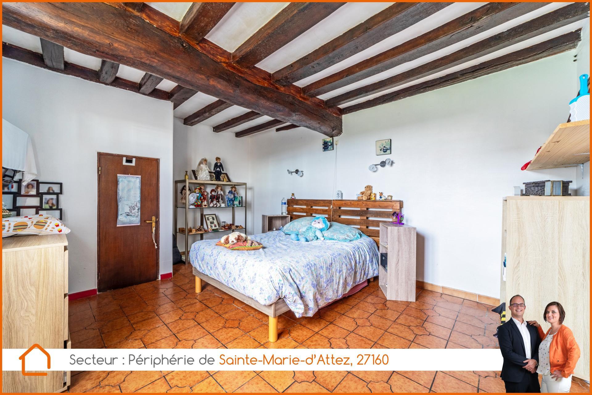 SAFTI Immobilier - Gaston & Flavie Quenet vous présentent en Exclusivité, dans un petit hameau au sud de Damville, sans circulation automobile au pied de la maison et accessible en 8-10 min. par la D51, à vendre une belle maison traditionnelle de type longère Normande ! Au rez-de-chaussée, venez découvrir la grande cuisine vendue aménagée et équipée pouvant faire office de salle à manger. Vous verrez à la suite, un salon tv cosy équipé d’un petit poêle à bois bûches tout neuf, ainsi qu’un accès donnant directement à l’extérieur avec vue sur le jardin. De part et d’autre du salon, vous aurez à disposition deux belles chambres accessibles de plain-pied. Vous trouverez également au rez-de-chaussée, une salle d’eau dotée d’une douche et d’un meuble vasque. Sans oublier les W.-C. séparés. De part l’intérieur de la maison, vous aurez également accès à un garage carrelé faisant office de buanderie, ainsi qu’un vaste atelier de bricolage pouvant être converti en surface habitable. Au grenier, vous trouverez un palier donnant, sur votre gauche ; deux chambres mansardées mais non chauffées - en enfilade, et sur votre droite ; un vaste espace également à convertir en surface habitable. Chauffage central par pompe à chaleur air/eau très récente et production d’eau chaude sanitaire par cumulus électrique. Les « + » : La situation géographique discrète de ce bien dans un petit hameau, les nombreuses surfaces disponibles pour divers rangements (atelier, garage, grenier et cellier/cave semi-enterrée), la plupart des ouvertures remplacées par du double vitrage, un nouveau tableau électrique très récemment révisé et surtout la toiture entièrement remaniée avec dépose/repose totale des tuiles de pays (+ de 20k€) ! Contactez-moi très rapidement afin de visiter votre future maison ! Un dossier de financement vous sera demandé.