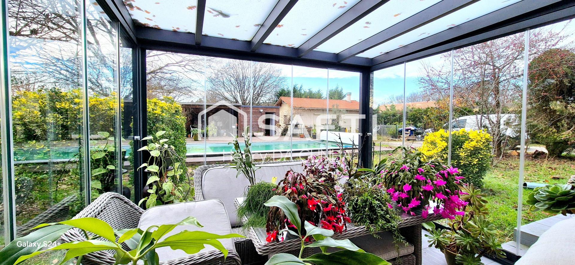 À l’extérieur, environnement soigné avec piscine au sel 8x4, local technique, pool house et portail électrique neuf.