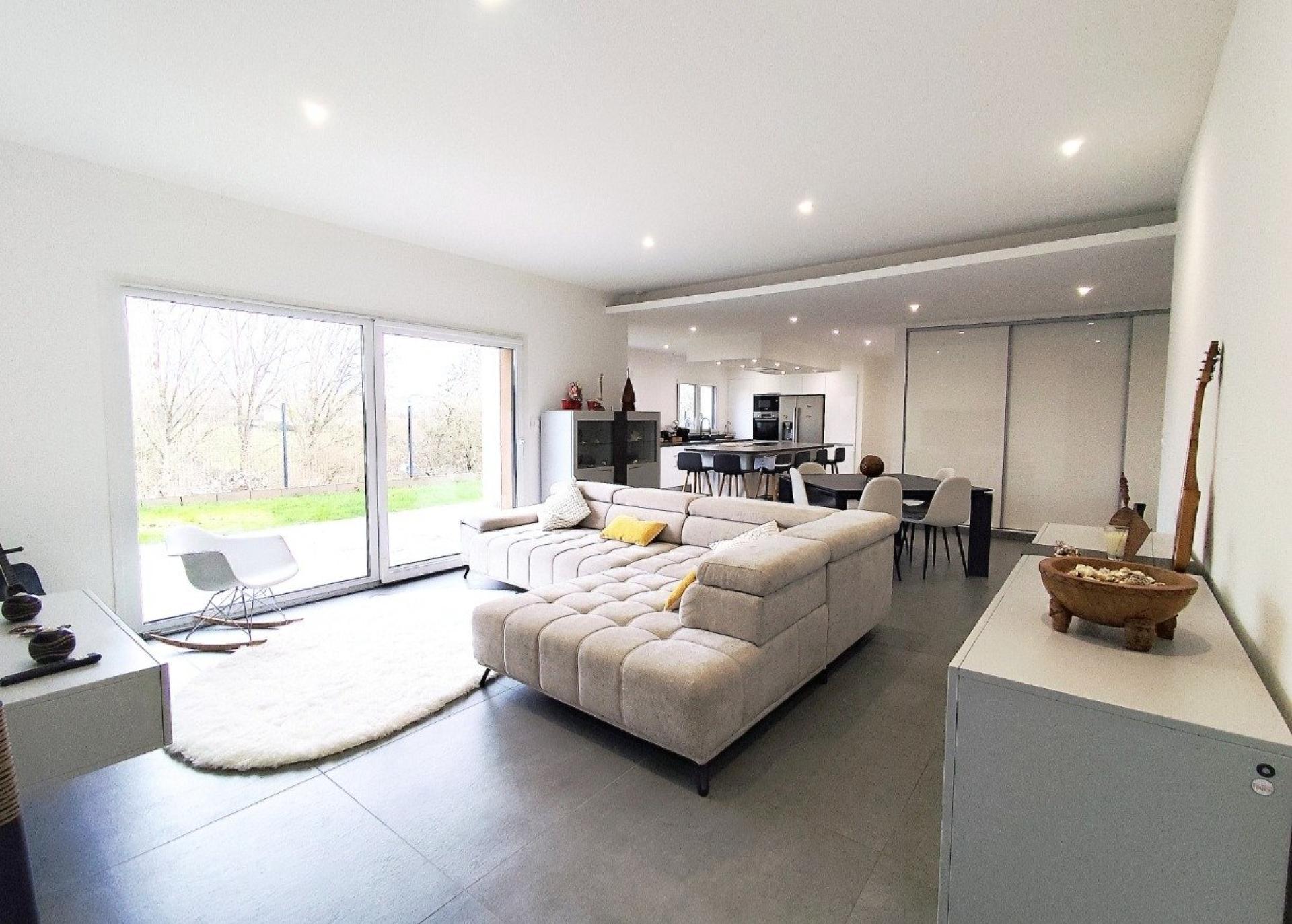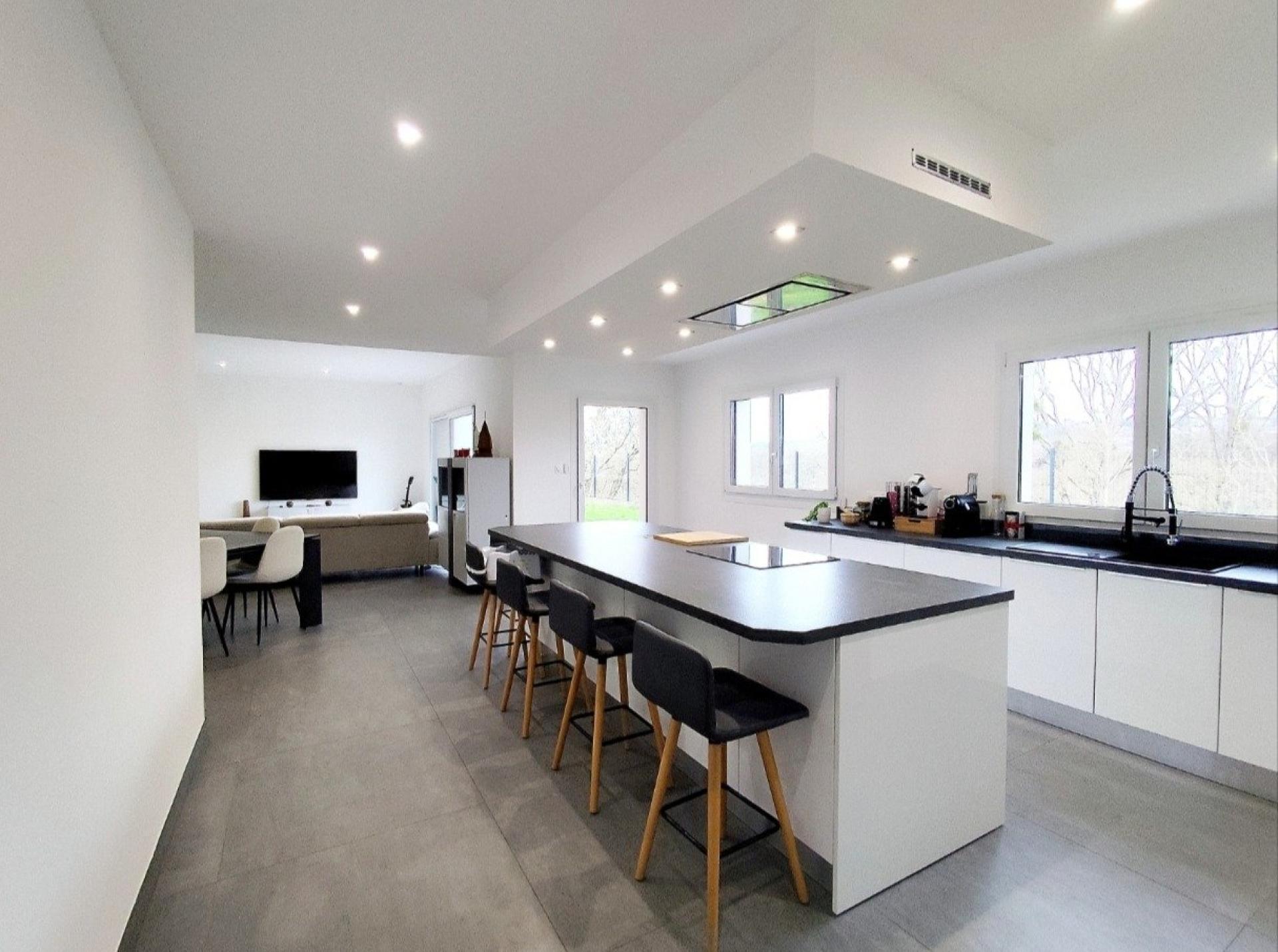 Située dans la charmante commune de Moineville (54580), cette maison individuelle de plain-pied bénéficie d'un environnement paisible, idéal pour les familles en quête de tranquillité. Nichée sur un terrain de 792 m², cette maison moderne édifiée en 2019, propose une surface habitable généreuse de 162 m², dont 50m² dédié à sa cuisine entièrement équipée, ouverte sur son séjour. Ses espaces lumineux et bien agencés ouvrent la voie à de multiples possibilités d'aménagement.