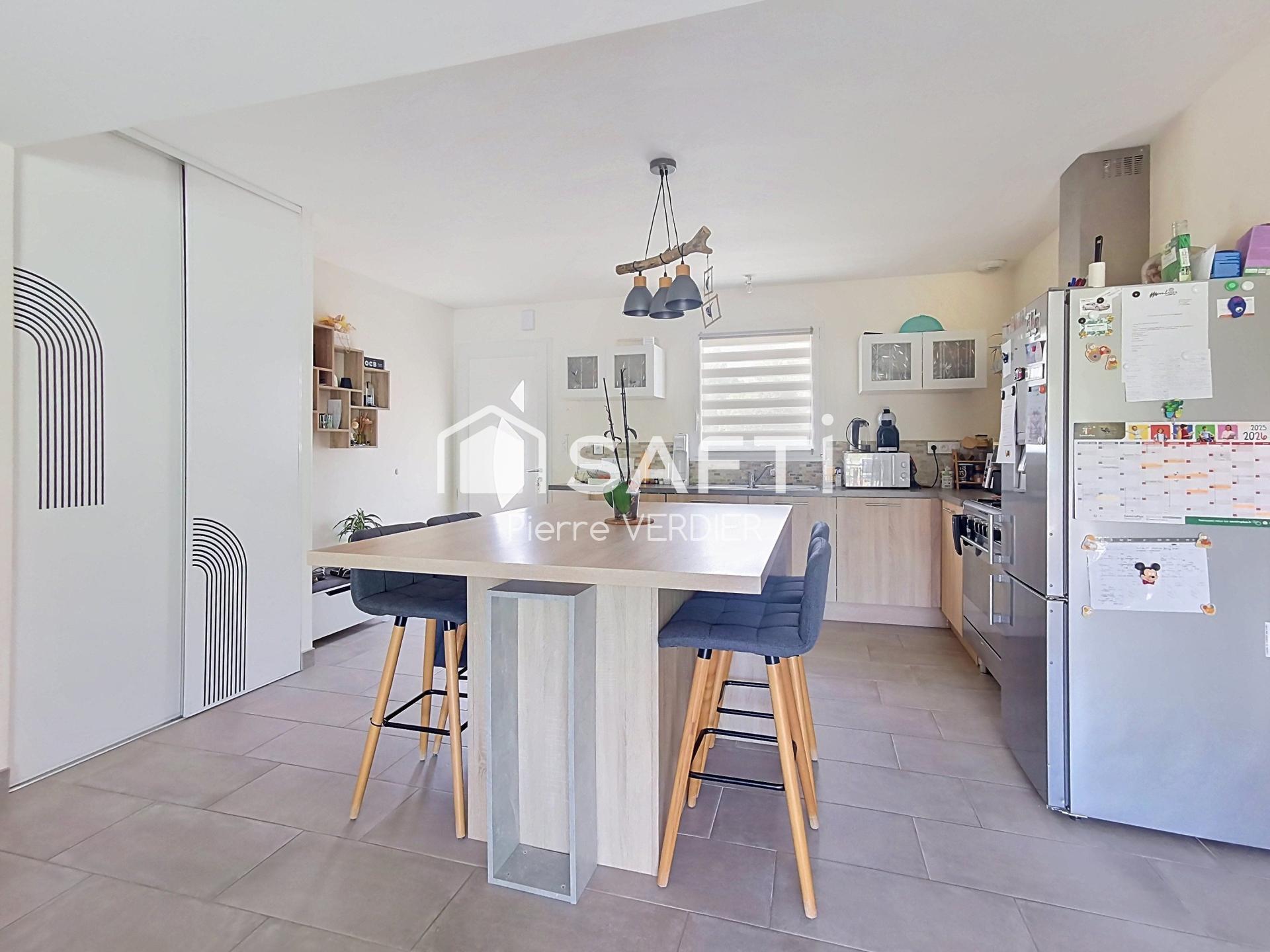 Cette maison d'environ 90 m², construite en 2019, propose un espace de vie lumineux et fonctionnel, comprenant 4 pièces dont 3 chambres. Dotée d'une salle de bains, d'un WC et d'un garage, elle offre tout le nécessaire pour un confort de vie optimal. Équipée d'un système de chauffage par pompe à chaleur (climatisation gainable), cette demeure allie modernité et économie d'énergie. Avec une surface de terrain de 1537 m², cette propriété offre également un bel espace extérieur, idéal pour profiter de moments de détente en plein air.