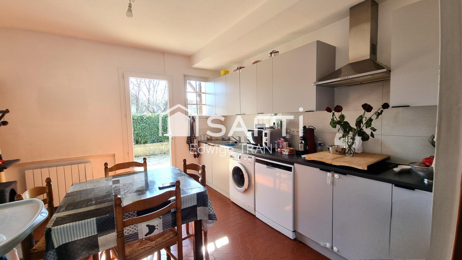 Maison de 91 m² habitables, actuellement louée, offrant un investissement locatif immédiat. Le bien est occupé par un locataire stable, avec un loyer mensuel de 579€. Il bénéficie d’une situation géographique idéale, à proximité immédiate des établissements scolaires et des commodités locales. Cette propriété comprend une entrée, une cuisine semi-équipée avec accès terrasse, un salon/séjour spacieux, 3 chambres possible 4, un wc séparé, une salle d'eau, une cave, un grenier et un garage. Le terrain de 500 m² est entièrement clos, offrant un espace extérieur agréable. La toiture est en bon état, chauffage électrique. Menuiseries en double vitrage pour moitié et survitrage pour le reste. La maison est reliée au tout-à-l’égout. Le DPE est classé "D" et la taxe foncière annuelle est de 1056€. Cette maison représente une opportunité d’investissement locatif, générant des revenus réguliers. Pour plus de renseignements votre conseillère Madame TRAN.