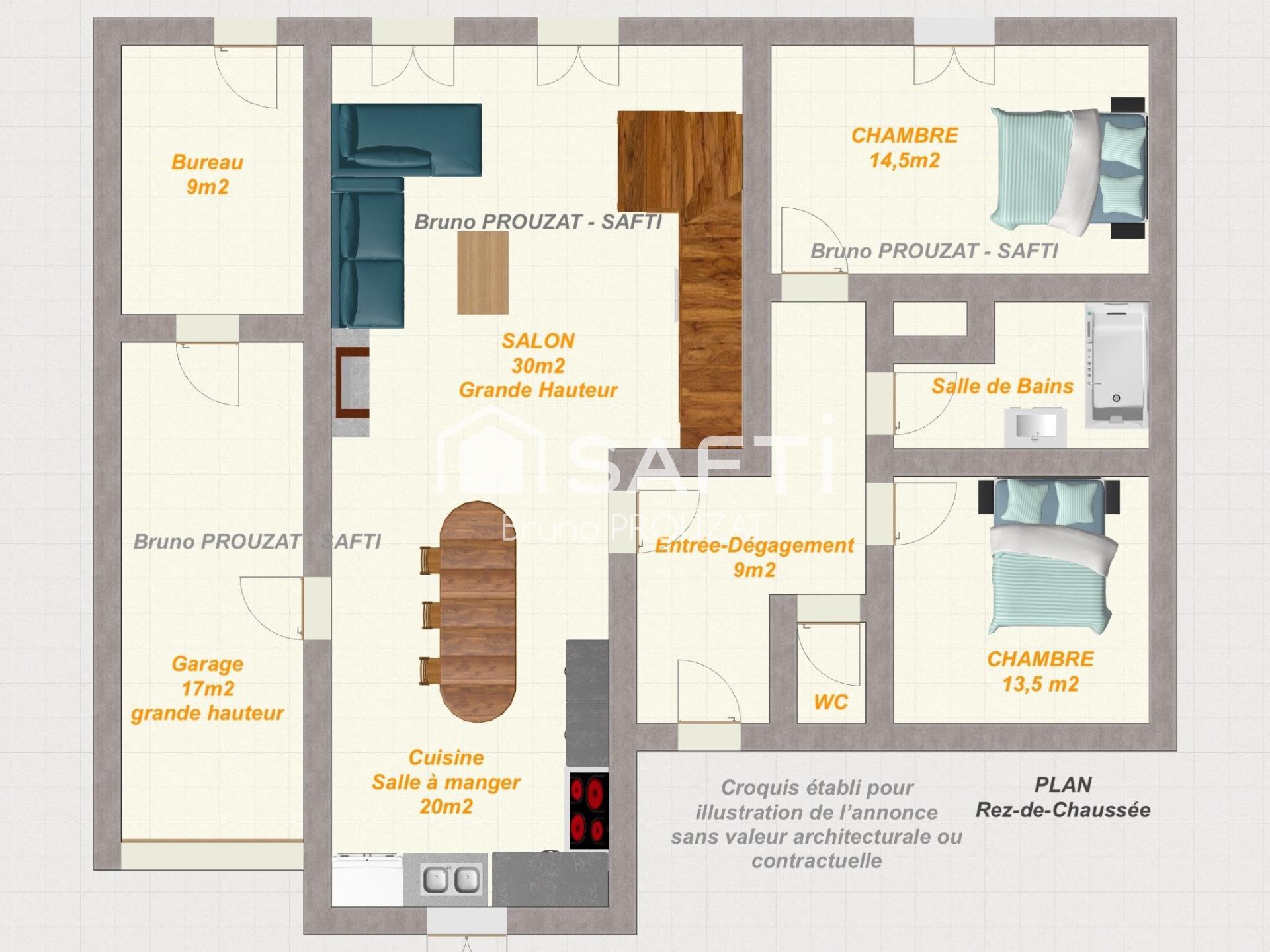 Complément : un garage de grande hauteur très pratique et un bureau, non compté dans la surface habitable