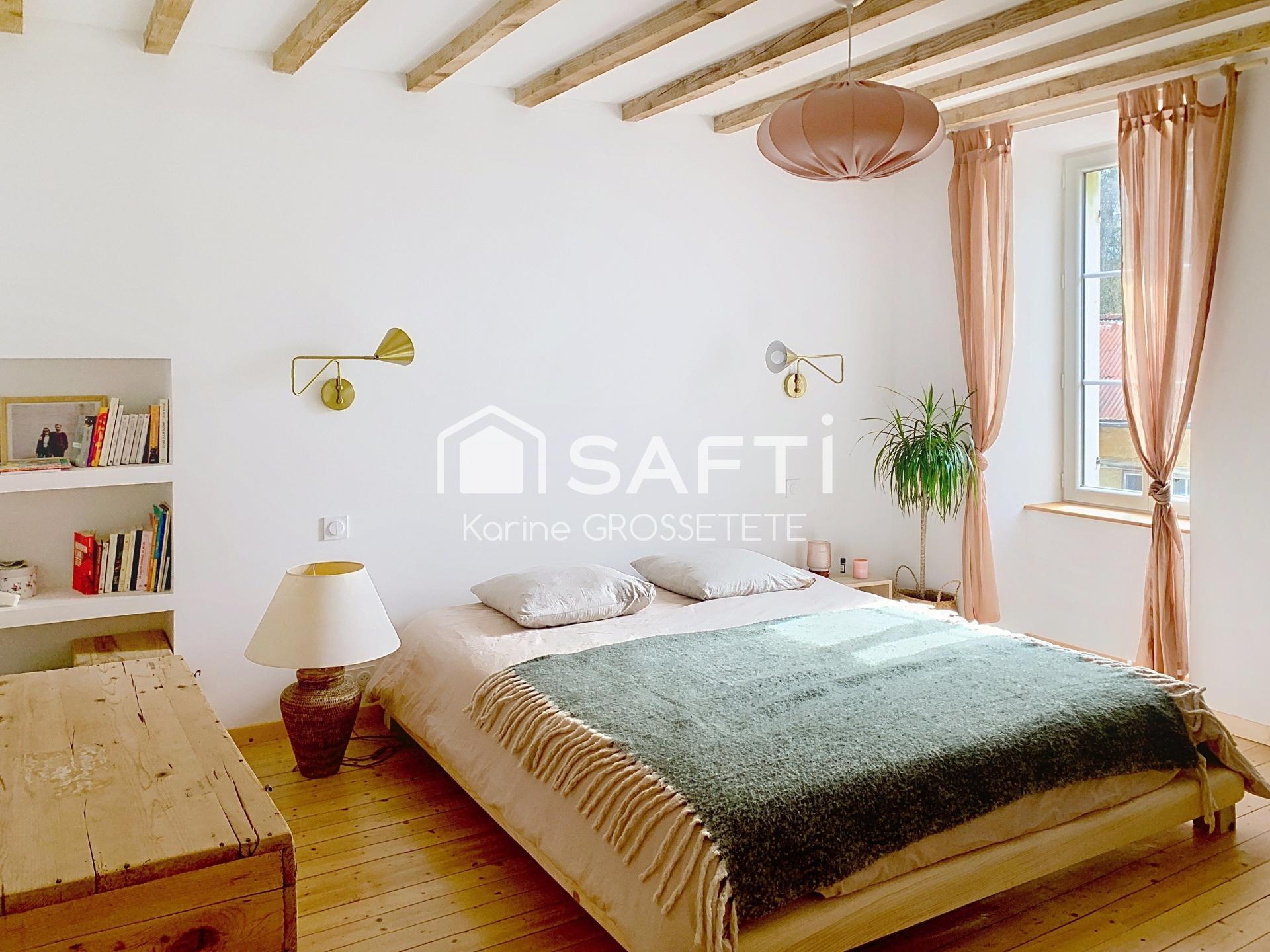 A l'extérieur, la cour fermée et exposée sud mène à un bois privé, offrant un véritable havre de nature à portée de main. une grange attenante ainsi qu'un atelier complètent ce bien.