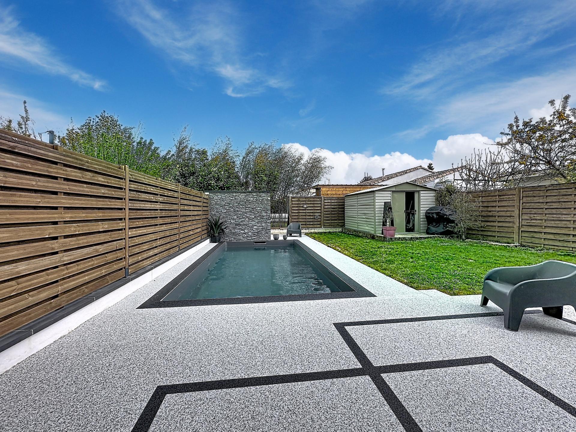 À l’extérieur un joli jardin avec une belle piscine, ainsi qu’un abri de jardin viennent compléter ce bien.
