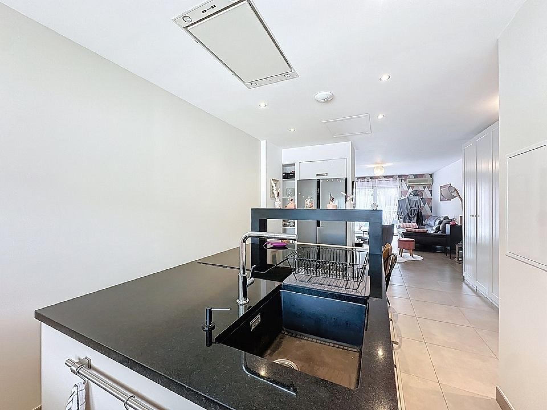 Elle se compose en rez de chaussée d’une entrée donnant sur une superbe cuisine fonctionnelle, ouverte sur la pièce de vie. Une chambre de plain pied ainsi qu’une salle d’eau avec WC, un dressing.