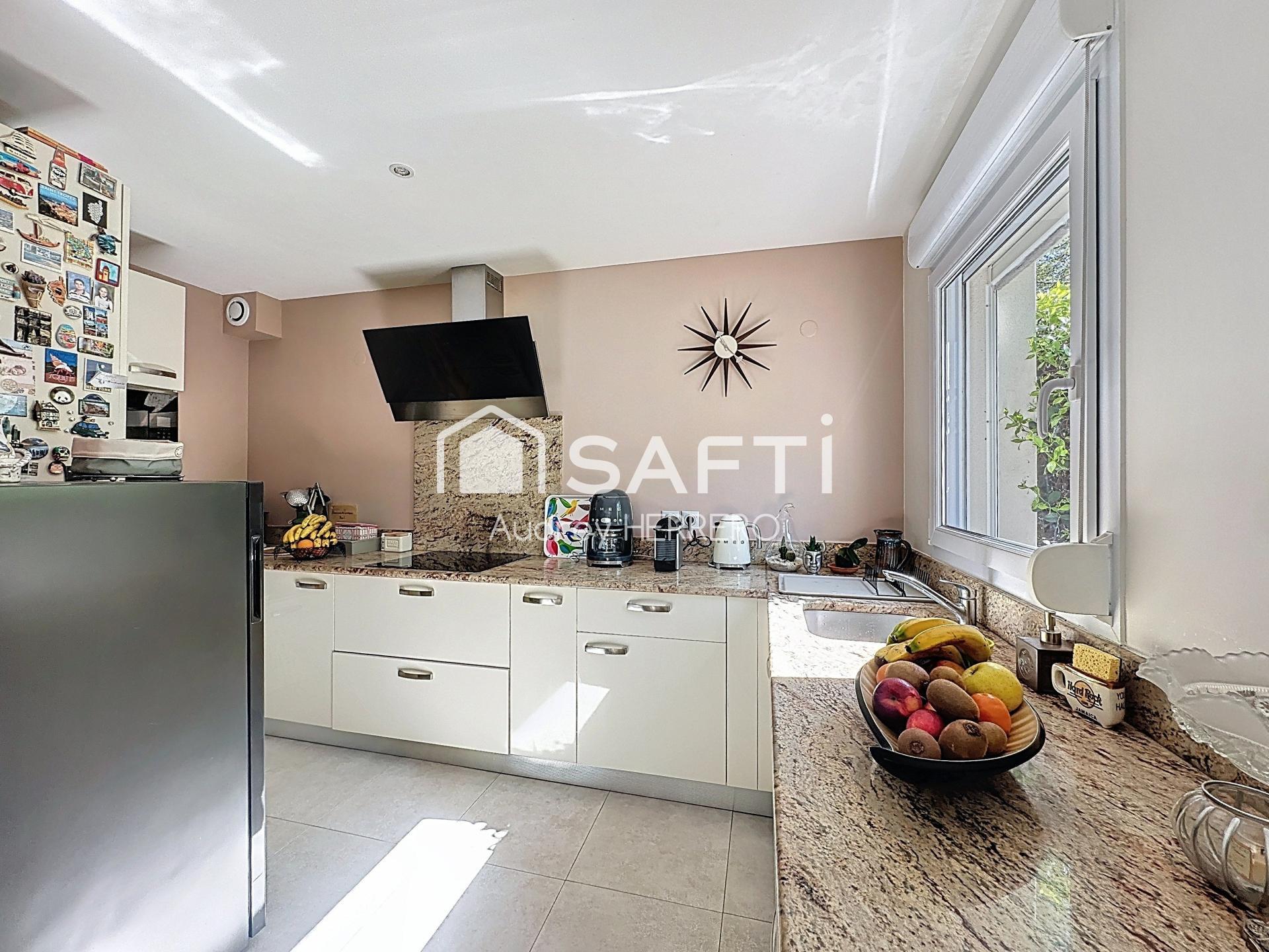 La maison est climatisée et équipée de la fibre, elle se compose en rez de chaussée d'une pièce de vie de plus de 30 m², composée d'une entrée, d'un espace salon, d'une magnifique cuisine équipée, d'un WC.