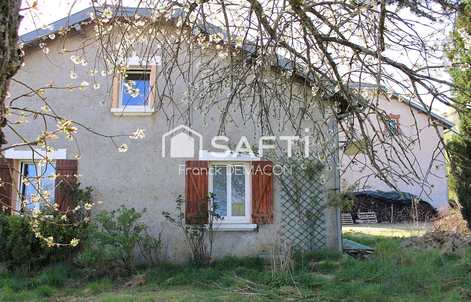 Le tout sur une parcelle de 5055 m², sans vis-à-vis, avec une vue dégagée sur la nature. Cour à l’avant, terrasse à l’arrière. Chauffage central au bois, menuiseries PVC/Bois double vitrage.