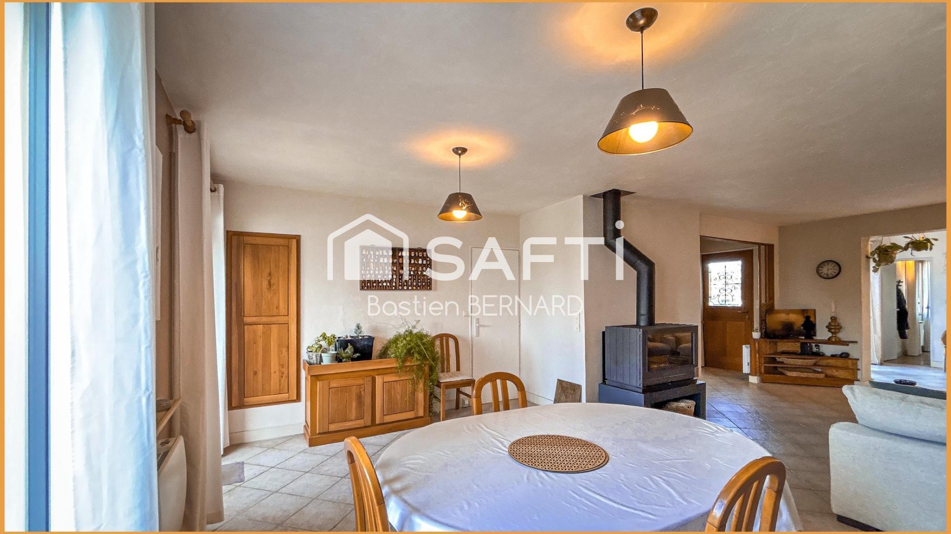 À l’intérieur, la maison séduit par son agencement et son atmosphère. Le séjour, réchauffé par un poêle à bois, offre une atmosphère conviviale. La cuisine est indépendante, deux chambres complètent le niveau principal avec salle d’eau et WC. En sousplexe, une suite parentale crée un espace à part, plus intime. Le sous-sol total complète l’ensemble : garage, buanderie, cave, atelier… tout y trouve sa place.