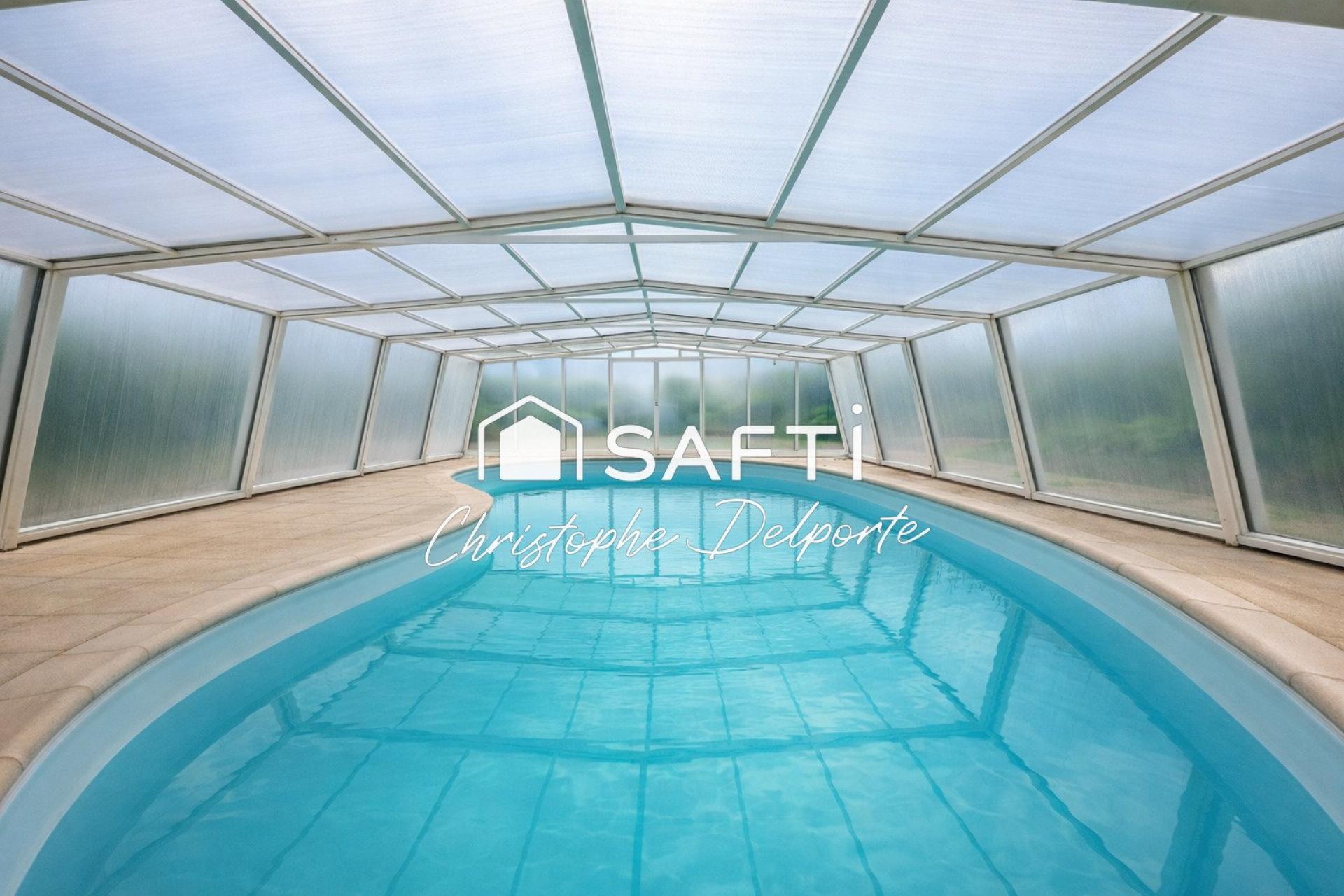 À l’extérieur : véranda neuve d’environ 25 m², piscine couverte utilisable (à rafraîchir), dépendances, carport et vastes espaces verts. L'assainissement a été remis aux normes en mars 2026.