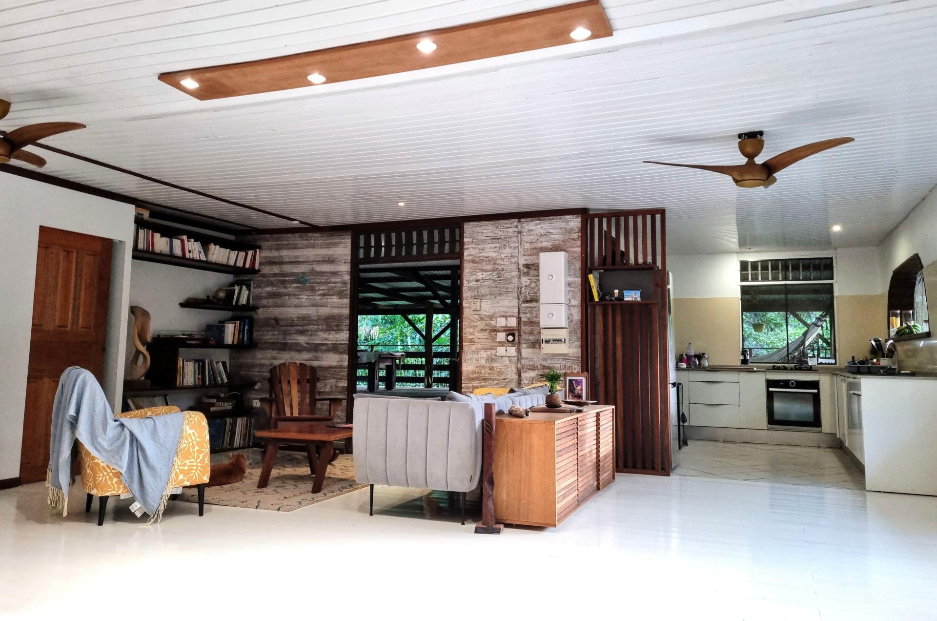 L’habitation principale, 1 T4 spacieux et moderne entièrement rénovée en 2022, offre le confort de 3 chambres dont 2 climatisées, 1salle de bain, 2 WC,1 cuisine ouverte sur 1 grand salon qui mène à une magnifique terrasse couverte de 85m².