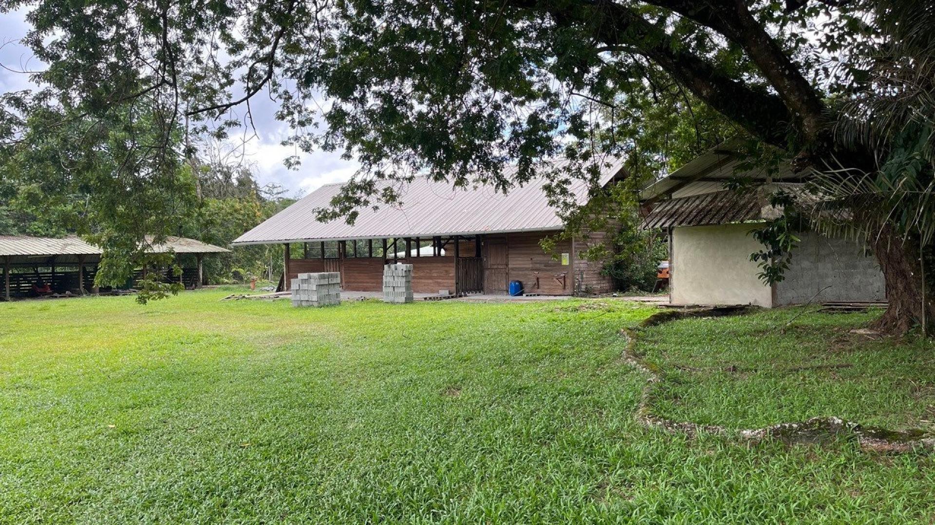• Bâtiment en cours d’aménagement : grande salle de réception et sanitaires, idéal pour mariages, séminaires, stages ou activités touristiques.