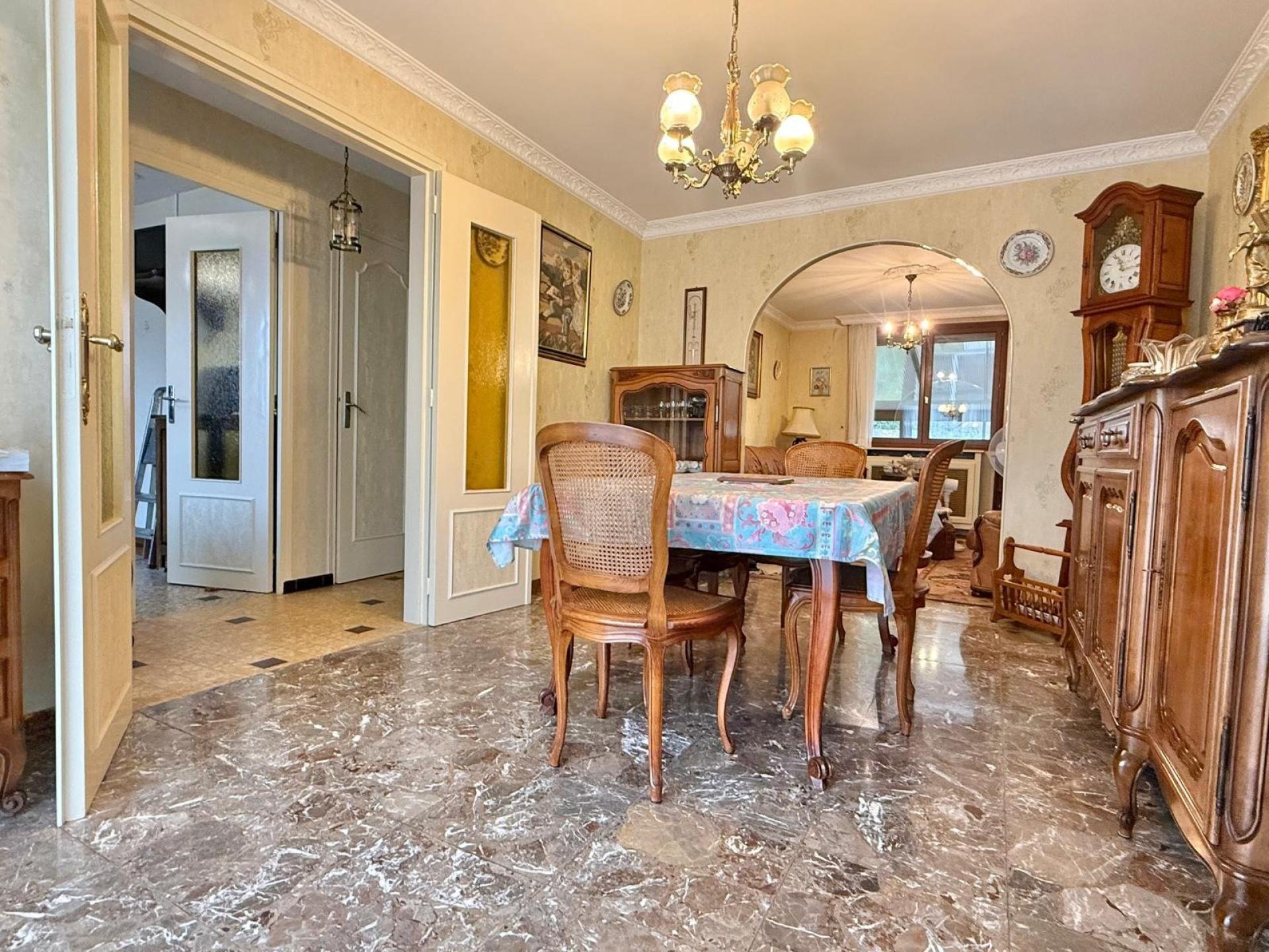 Construite en 1966 sur un terrain de 380 m², cette maison de 94 m² comprend un sous-sol total de plain pied avec un garage double, une chambre, une buanderie et une chaufferie au gaz de ville. Au rez-de-chaussée, vous trouverez une cuisine équipée, un séjour, un salon, une chambre, une salle de bains et des toilettes. Avec une vaste véranda, un cabanon et des combles, cette propriété offre un potentiel d'extension intéressant. Une bonne construction et la possibilité d'agrandissement font de cette maison un investissement prometteur.