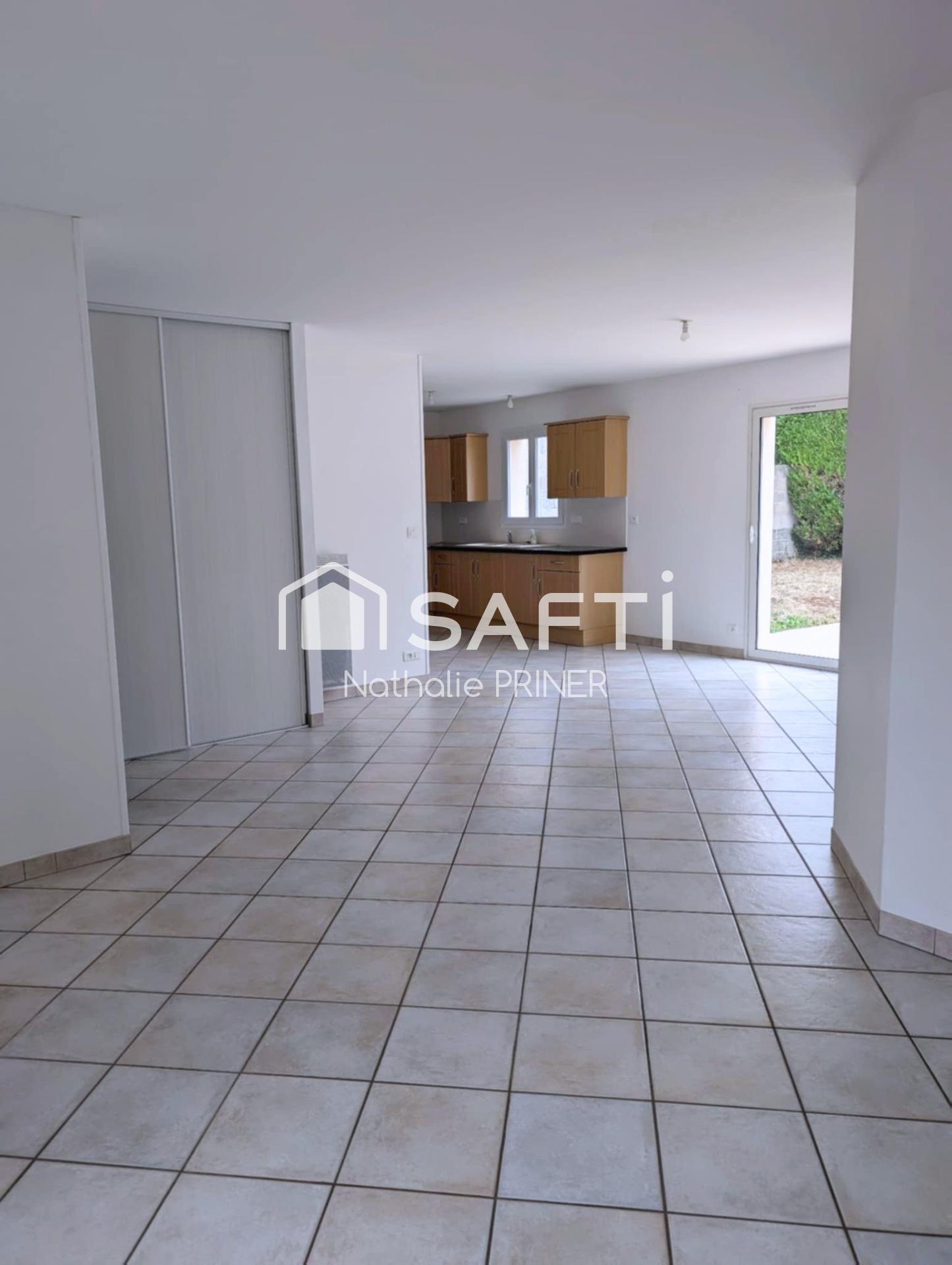 Elle offre trois chambres, une pièce de vie lumineuse avec accès direct à la terrasse, une cuisine équipée moderne et fonctionnelle, une salle de bain ainsi qu’un garage attenant pratique pour stationner ou pour le rangement.