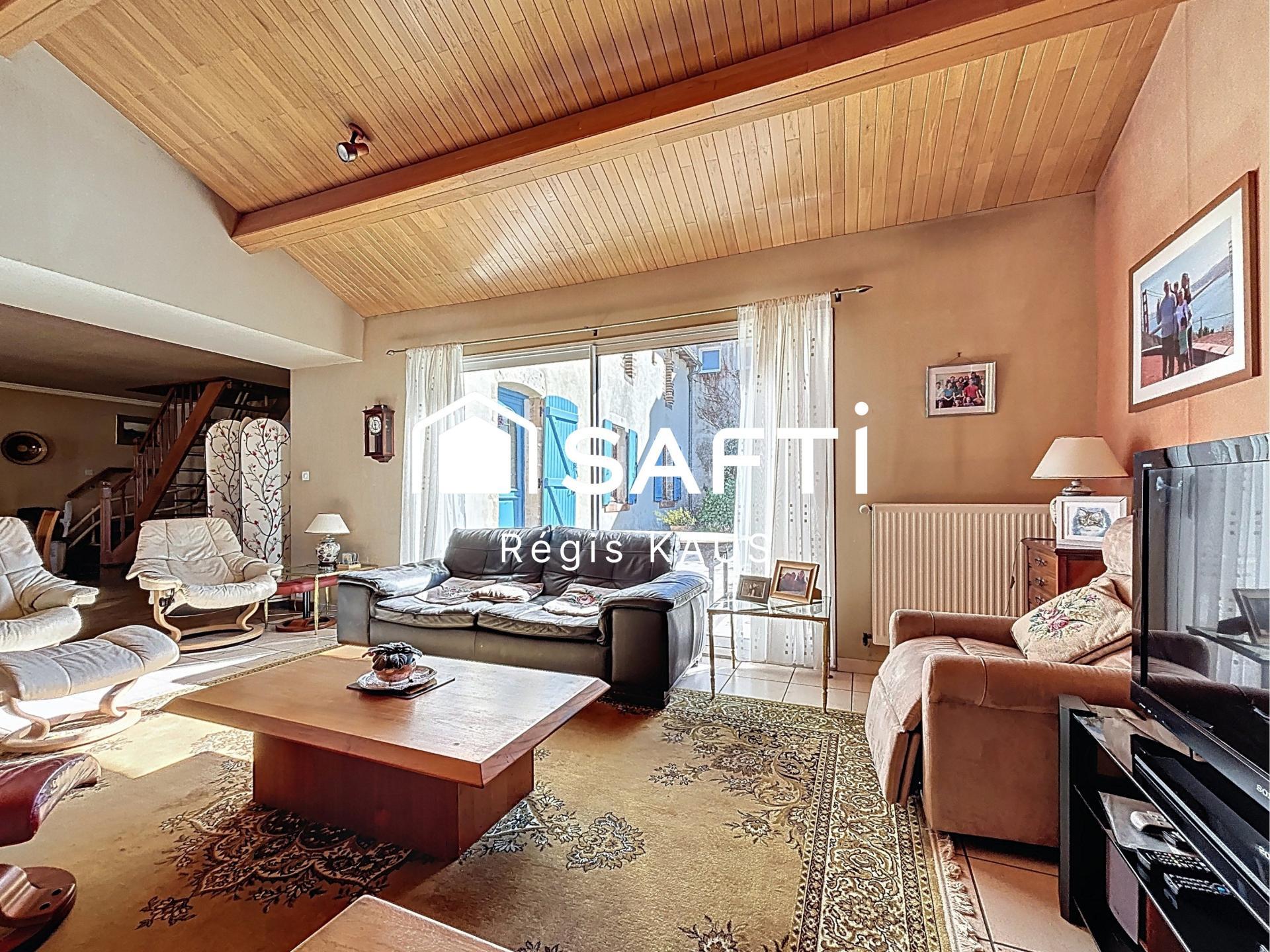 Cette maison de 181 m² sur un terrain de 613 m² se compose au rez-de chaussée d’une entrée, d’un séjour-salon de 57 m² avec une cheminée insert et une baie vitrée donnant sur la terrasse et le jardin, d’une cuisine, d’une arrière-cuisine, d’une chambre de 12,5 m², d’un wc, et d’une salle d'eau. À l'étage, un palier dessert une chambre de 24m² avec sa salle d’eau privative et deux autres chambres en enfilade avec salle d'eau et toilettes. À l'extérieur, un joli jardin arboré avec bassin et terrasse vous fait bénéficier d’une vue agréable. La propriété dispose également de deux garages, d'une dépendance et d'un appentis, offrant ainsi de multiples possibilités d'aménagement. Côté technique : Chaudière gaz de ville, raccordement au tout à l’égout, ouvertures en PVC double vitrage, fibre optique