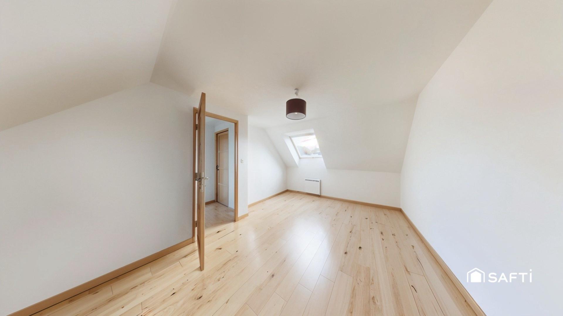 A l'étage, vous disposerez de deux chambres spacieuses et lumineuses, d'un large palier pouvant servir d'espace bureau et d'un wc.
